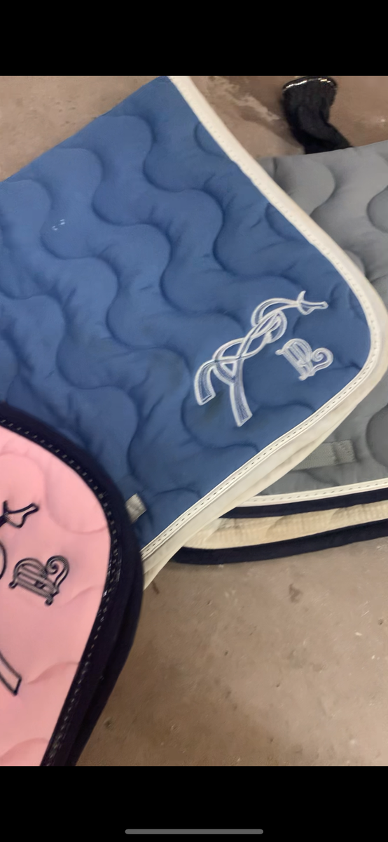 Hello ! Je vends : 🌸Un tapis bleu ciel Pénélope Leprevost 📏 Taille : cheval 🌈: couleur : bleu ciel 💶: Prix : 65€ 🎀 Le modèle classique 🌼Echange possible contre un tapis rose / fuchsia ou Harcour noir / wow store noir ✨Prix négociable, remise en mains propre possible (95) plus de photos possibles