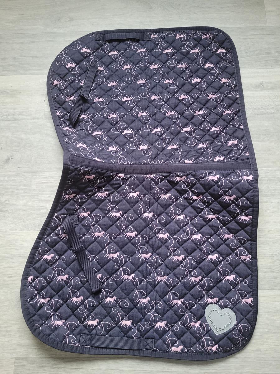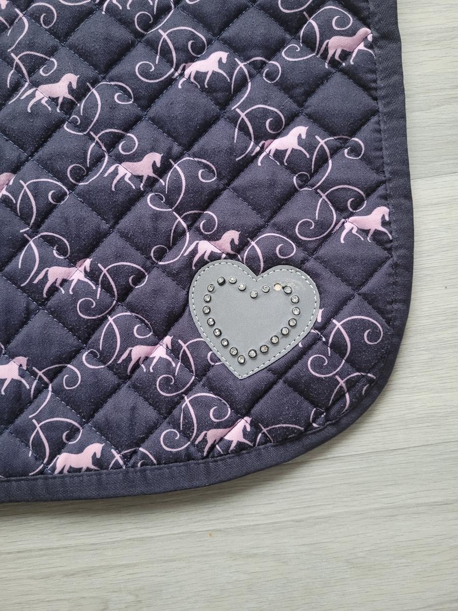 Tapis avec motifs chevaux. Un strass manquant au coeur sinon très bon état.