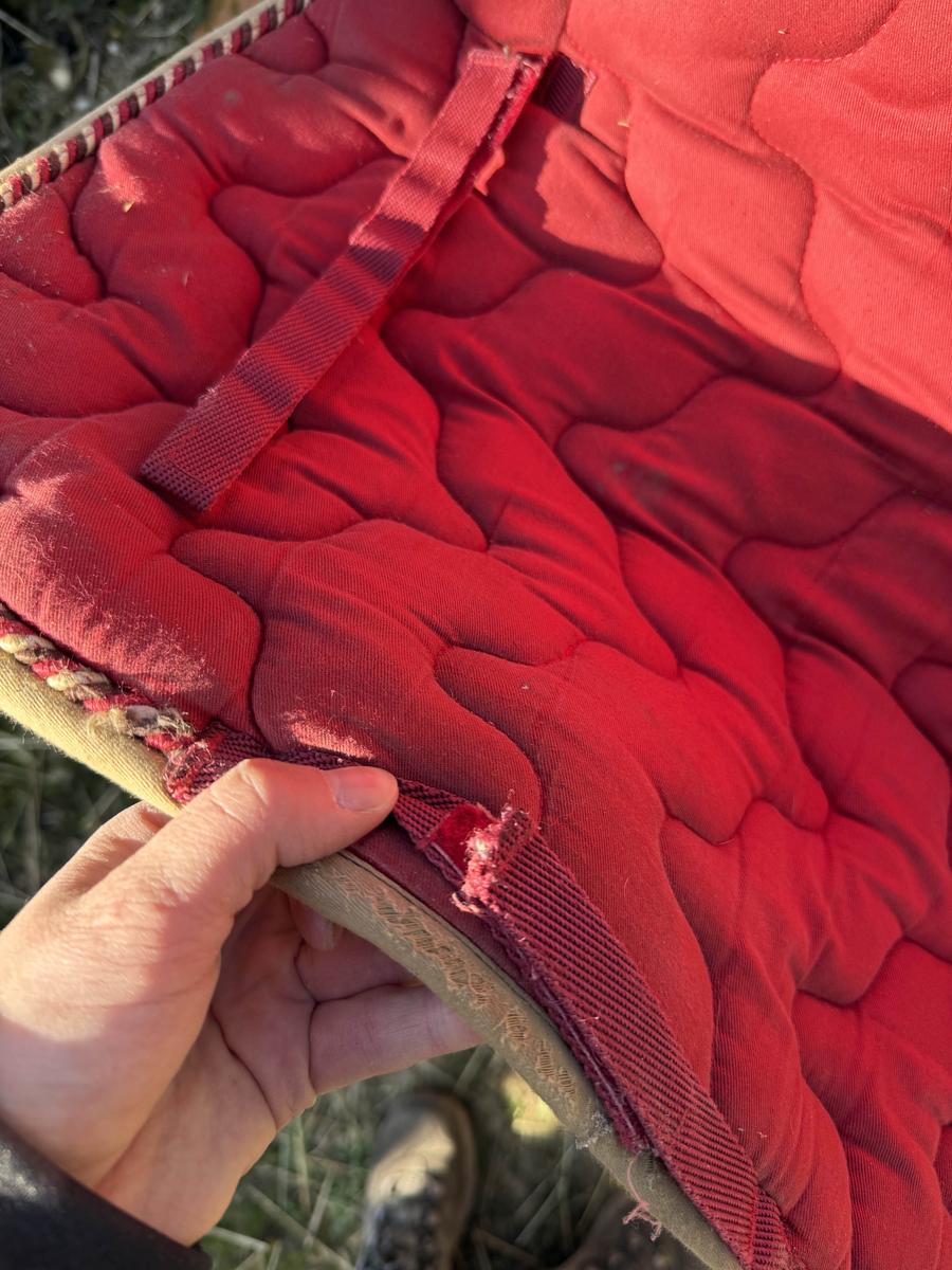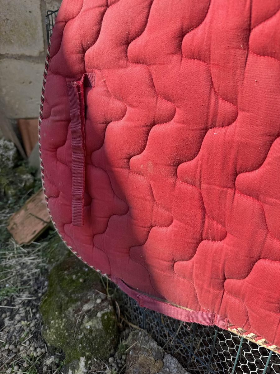 tapis taille cheval, rouge marque Equitheme usé mais bon état