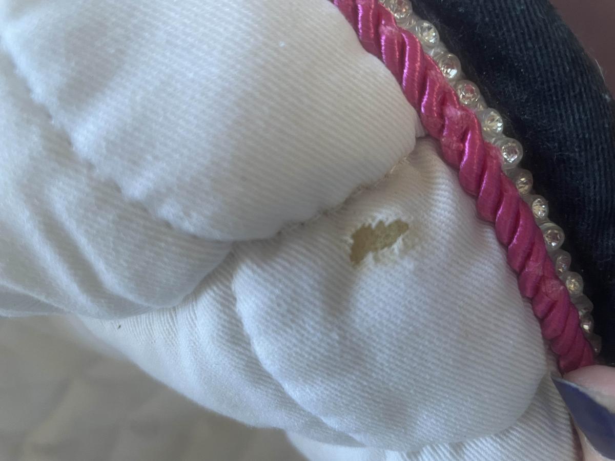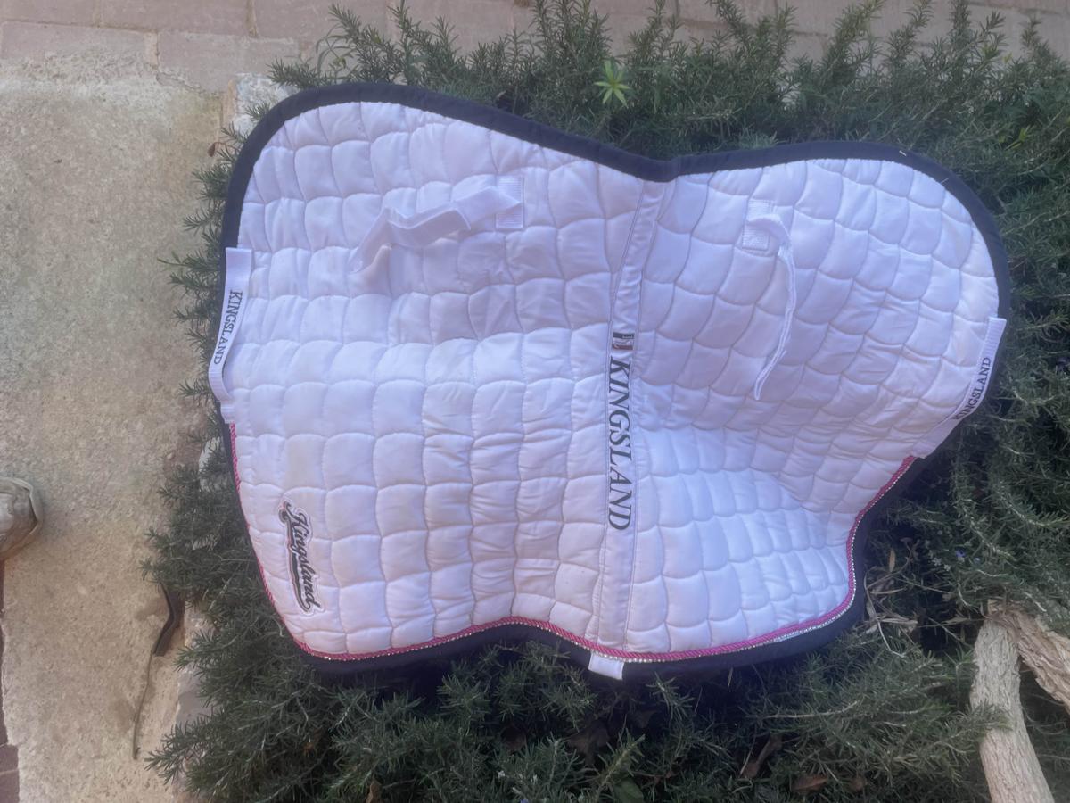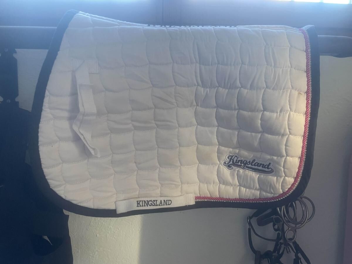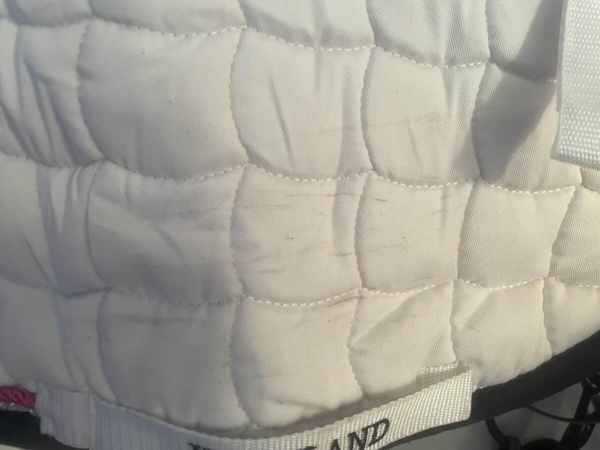 Un trou sur le tapis, et des traces de selle au niveau du passage de sangle, mais sinon en bon état
