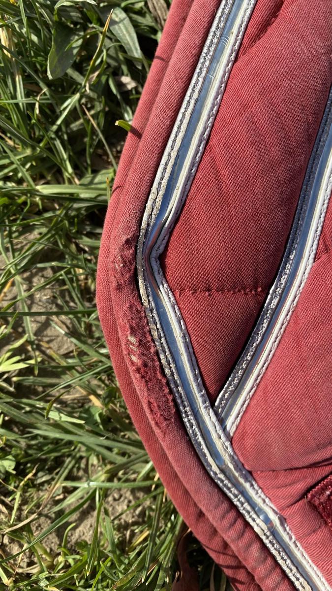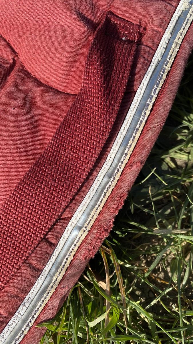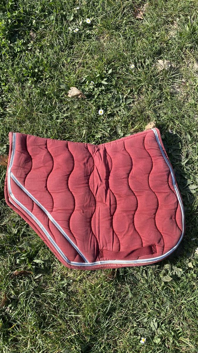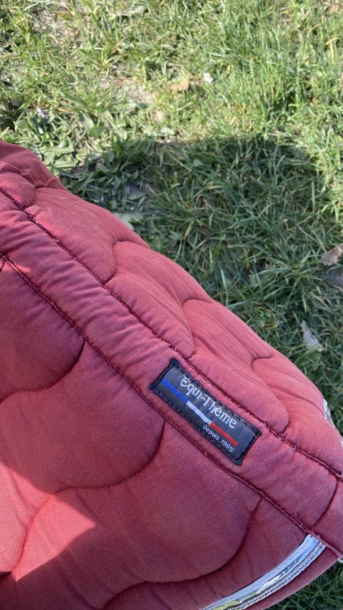 Tapis coupé bordeaux équithème taille cheval, trace d’usure voir 3 dernières photos