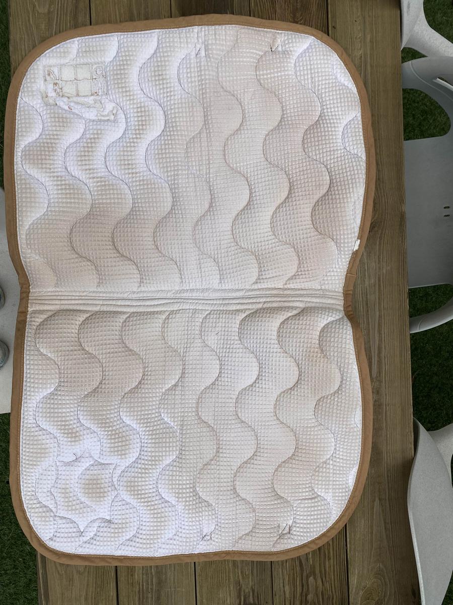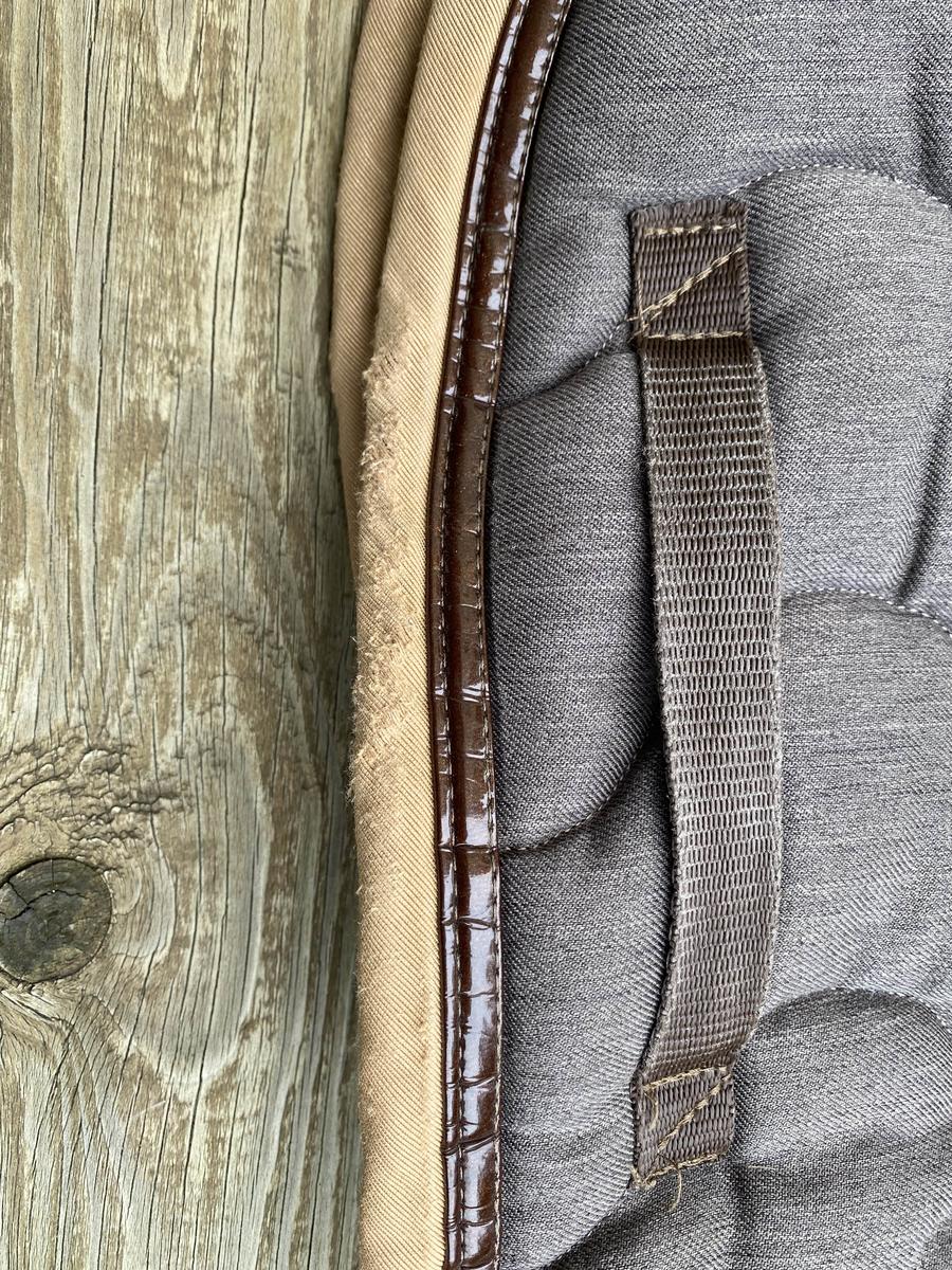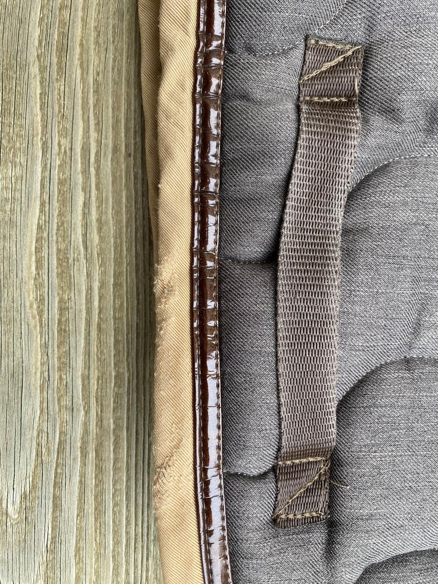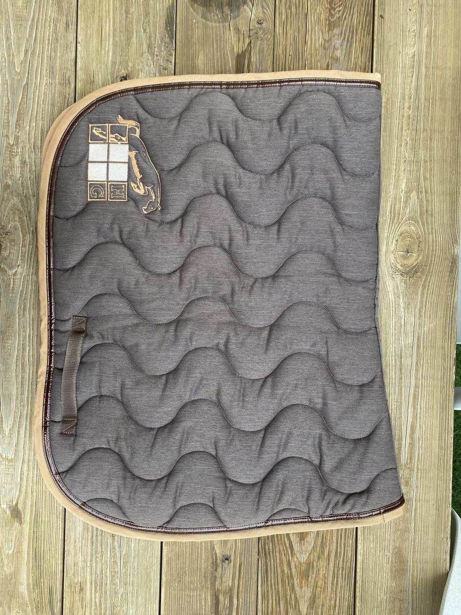 En très bon état et lavé présente quelques traces légères d’usure au passage de sangle. Utilisé uniquement en concours Couleur marron liseré beige