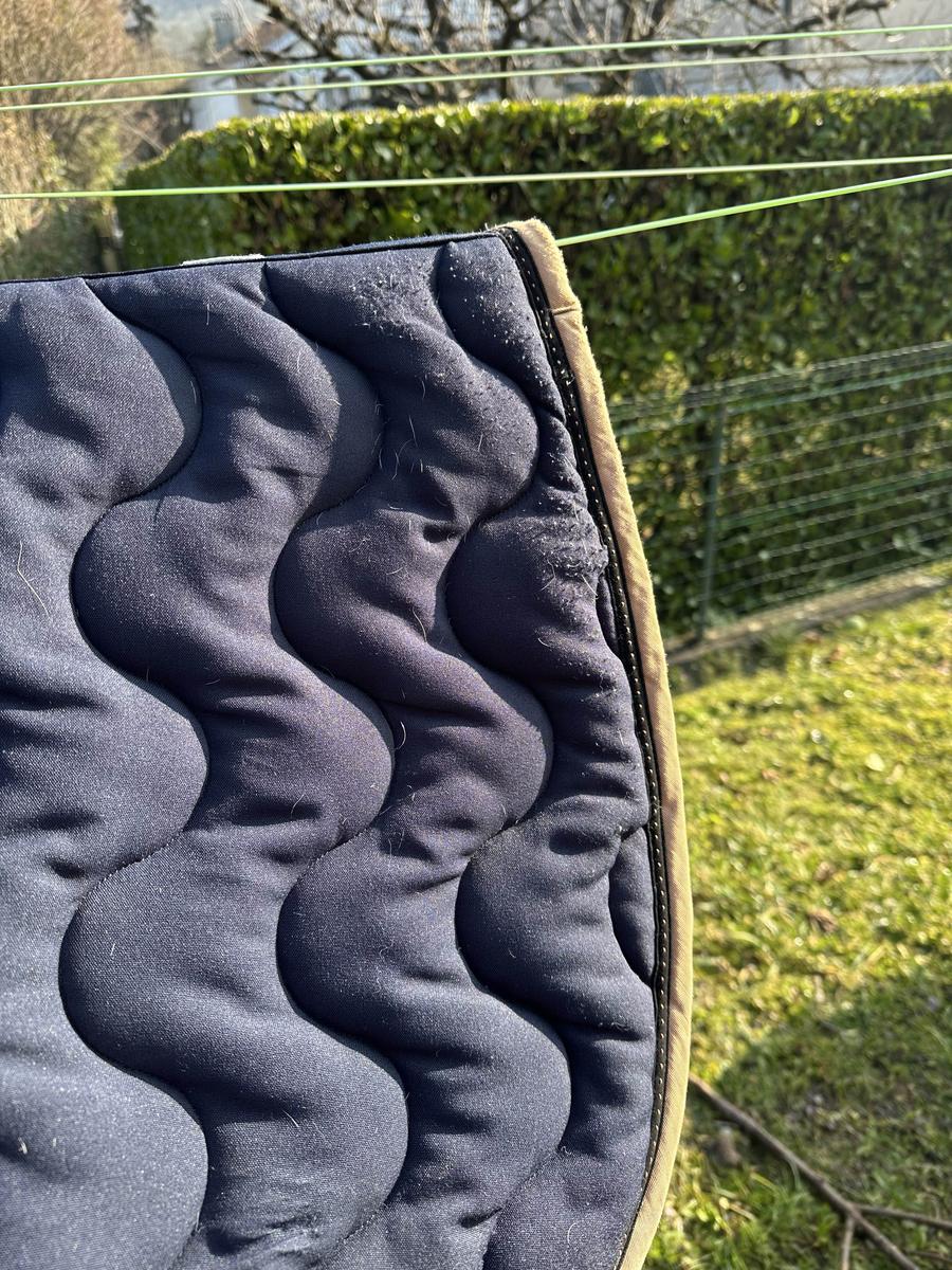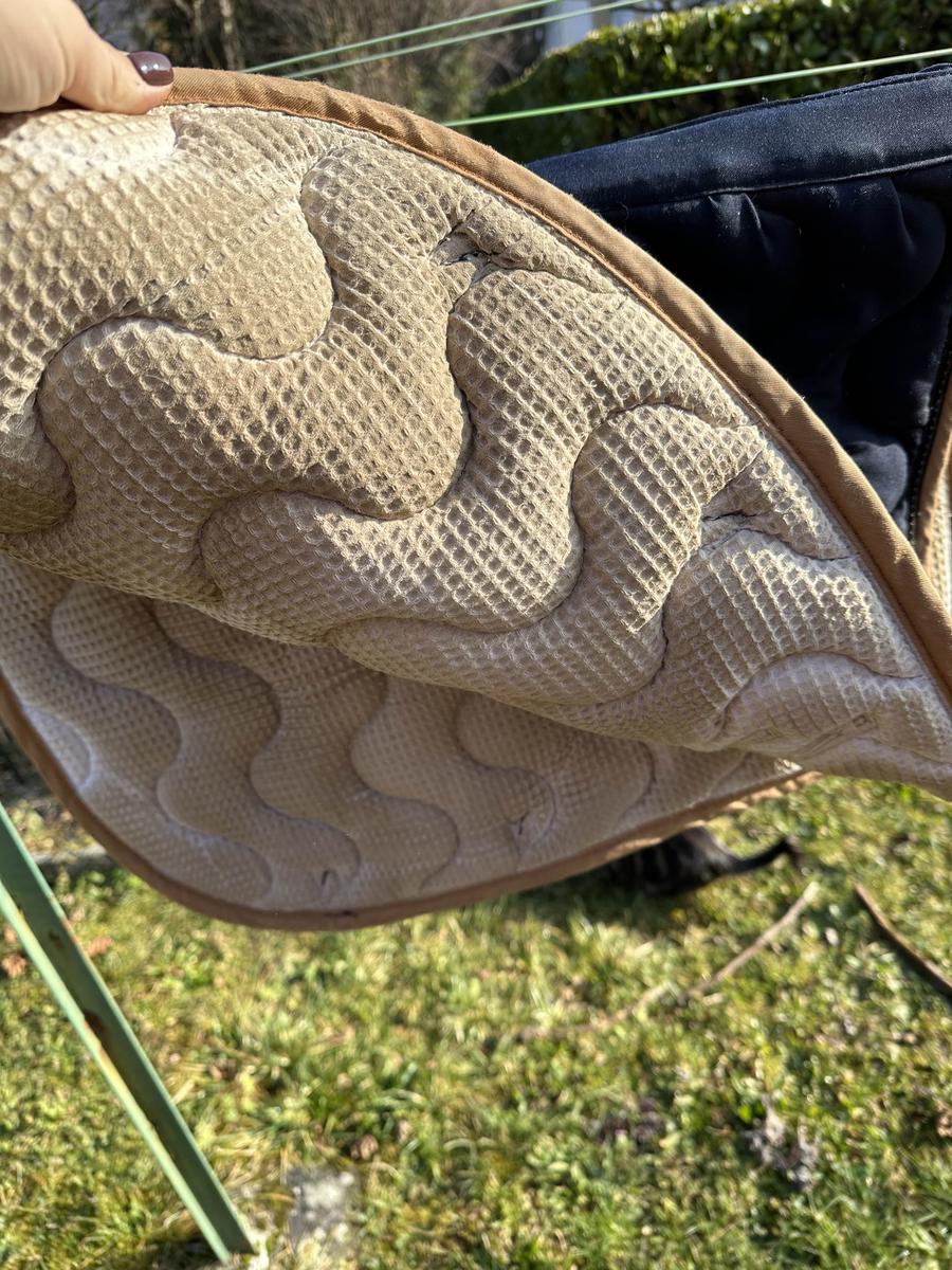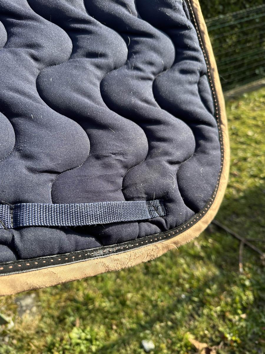 en bon état le tissus s’abîme un peu au passage de sangle mais invisible avec la selle (usure)