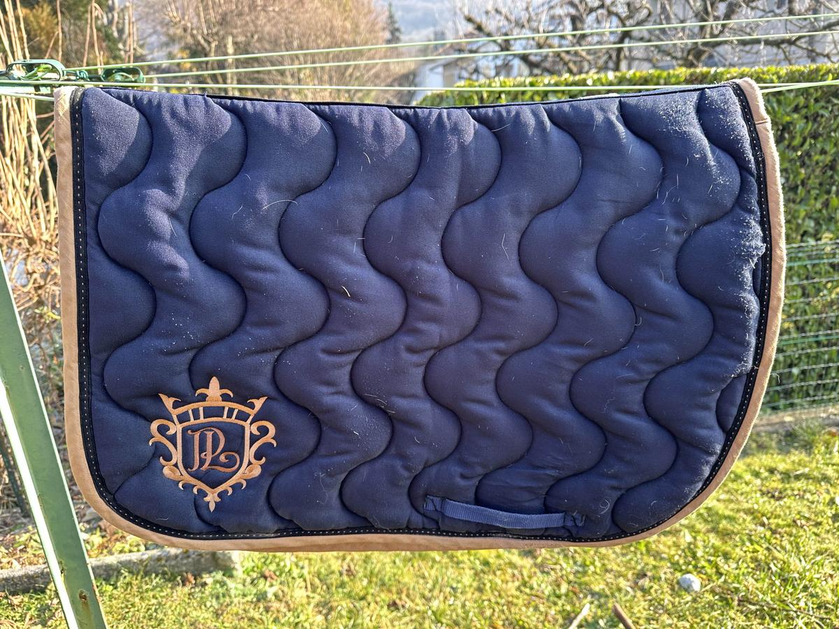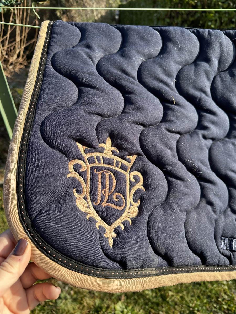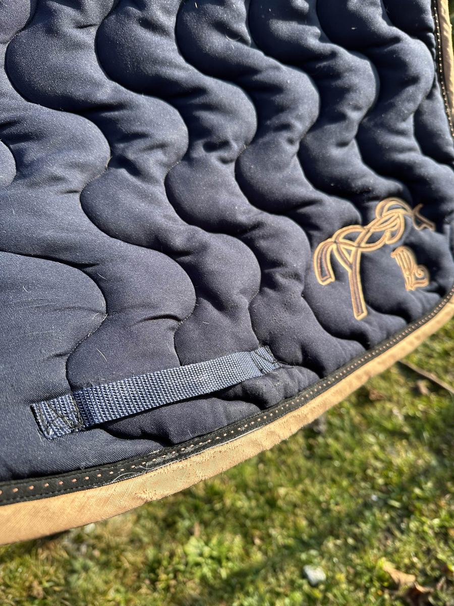 en bon état le tissus s’abîme un peu au passage de sangle mais invisible avec la selle (usure)
