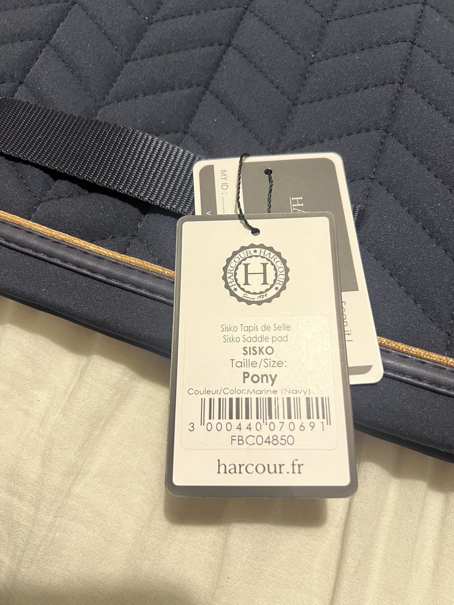 Tapis harcour Sisko taille poney de couleur bleu marine avec les détails rose gold. Il est neuf avec l’étiquette n’a jamais été essayé.