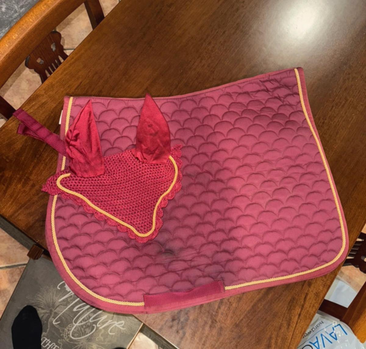 tapis de selle bordeaux + cache-oreilles