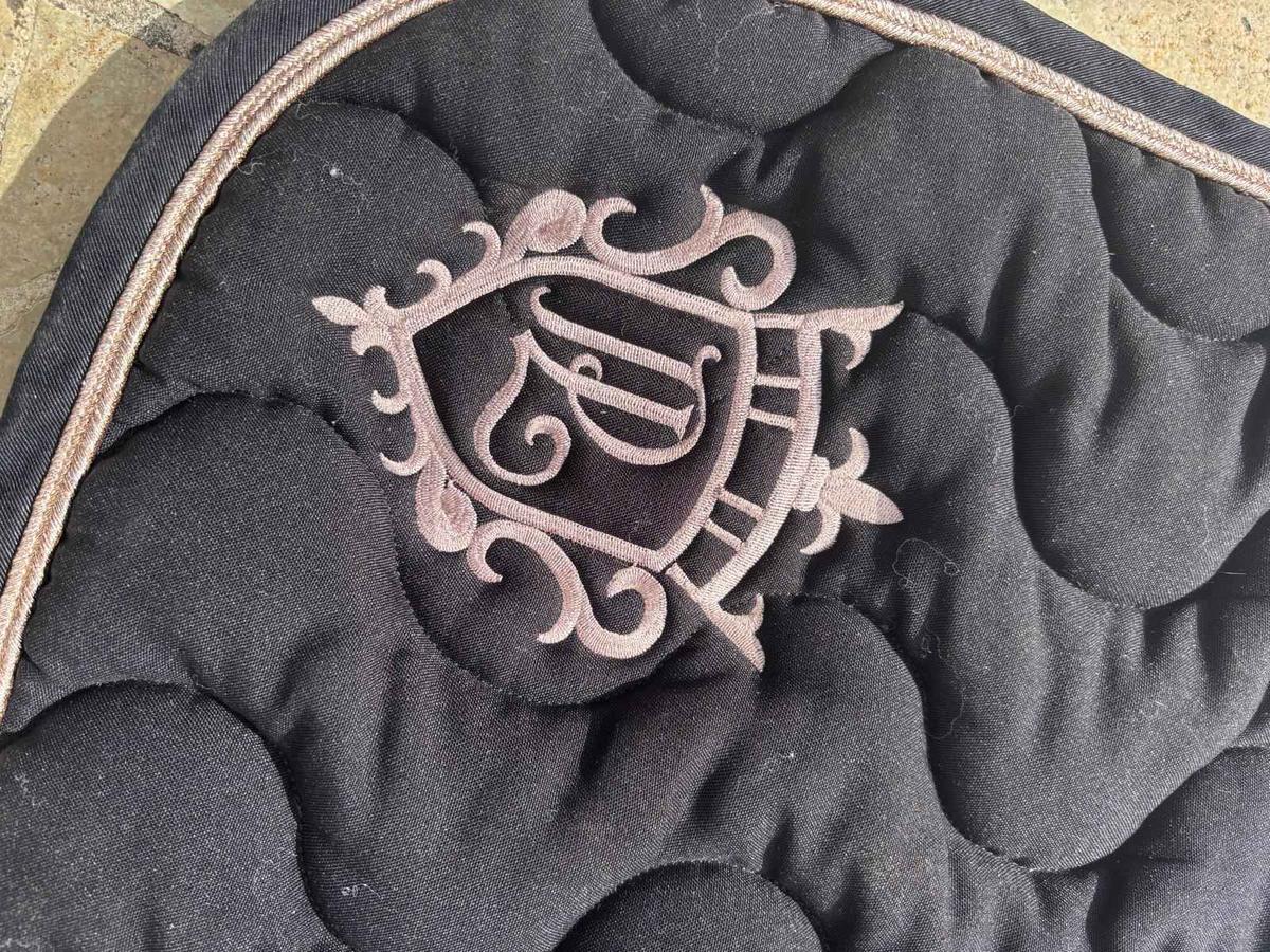 tapis de selle Point Sellier classique Penelope Leprevost noir et rose gold.