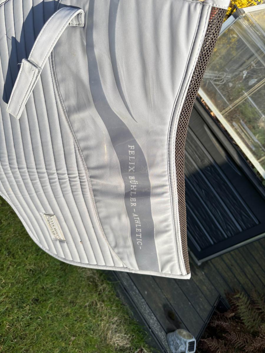 tapis Félix Buhler gris avec gripp pour maintenir la selle en place, ligne en mesh au niveau de la colonne vertébral pour libérer celle-ci