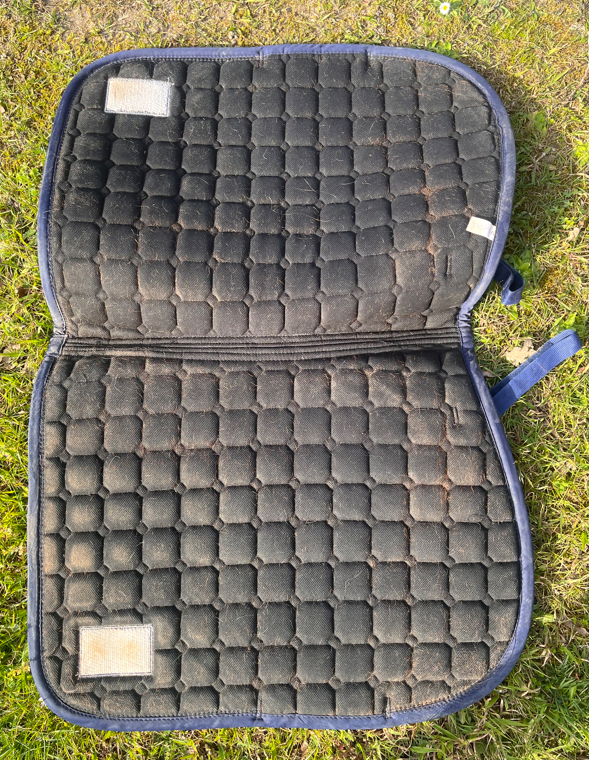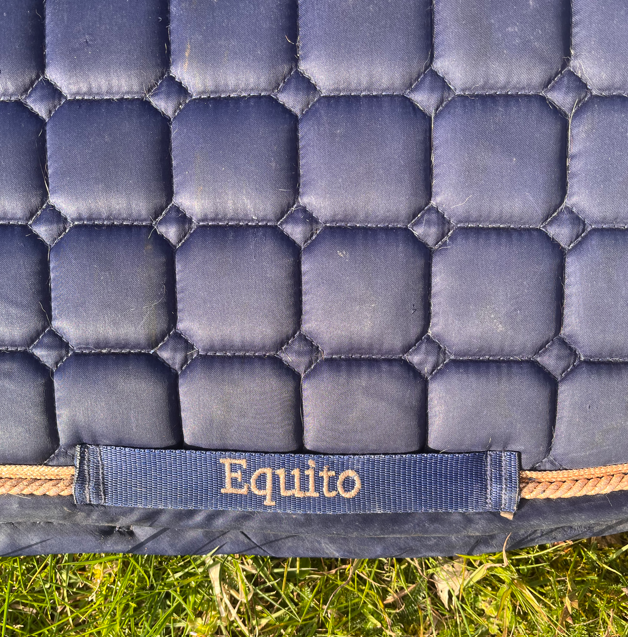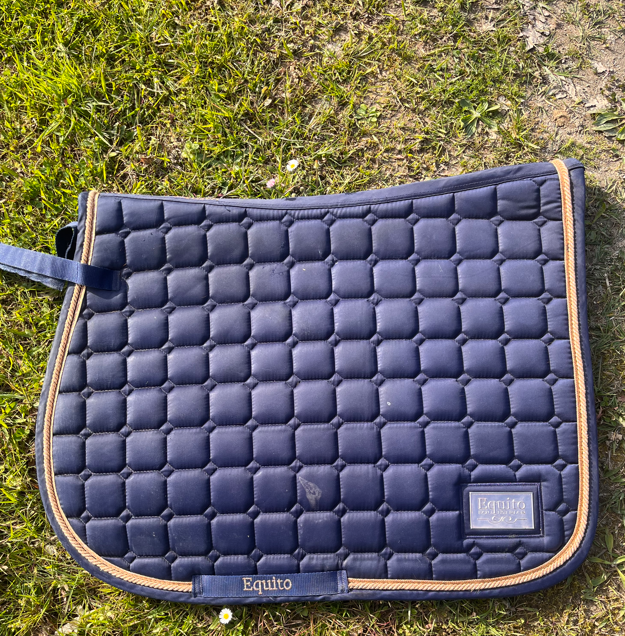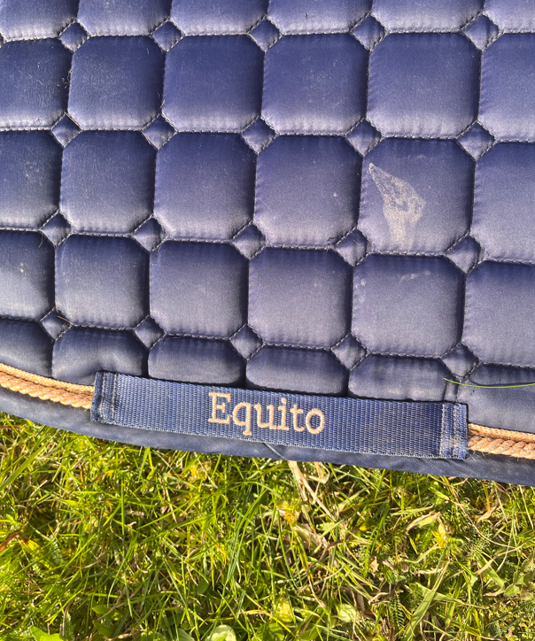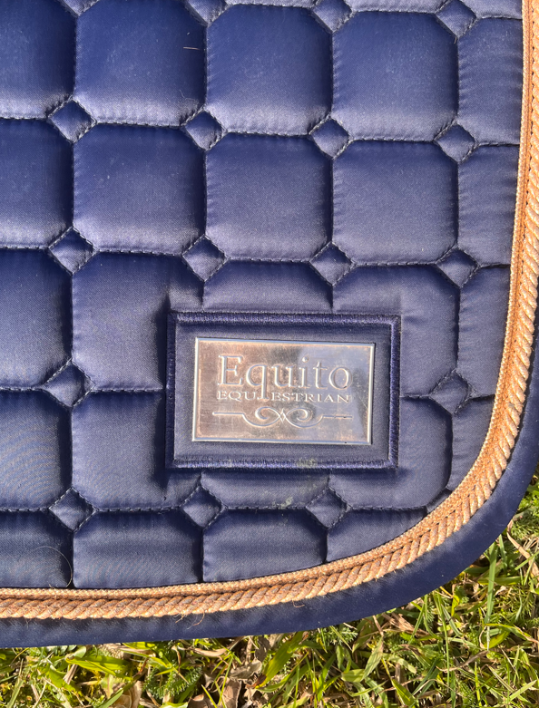 Tapis Equito bleu marine et rose gold, format mixte, taille cheval.