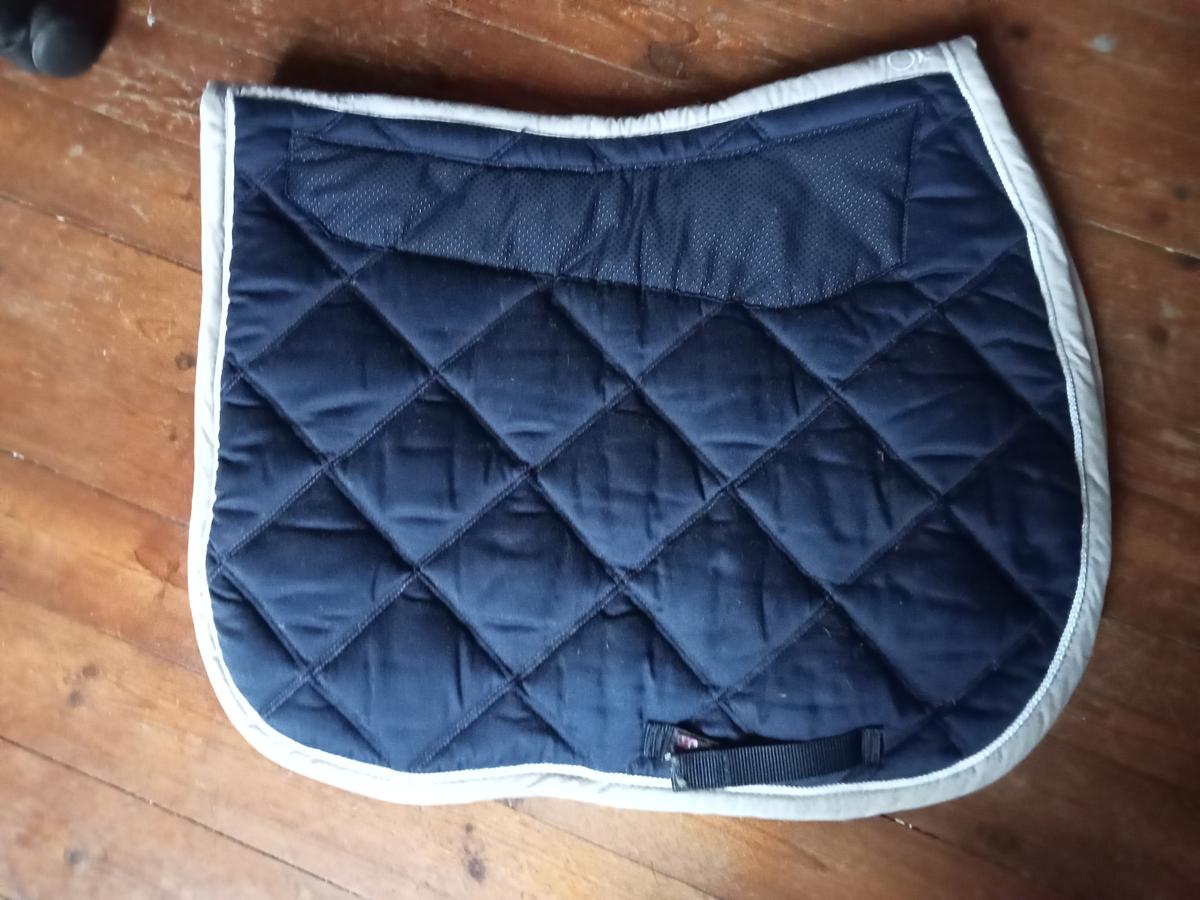 Tapis de selle de la marque decathlon de couleur bleu marine (tons bleus avec violet).