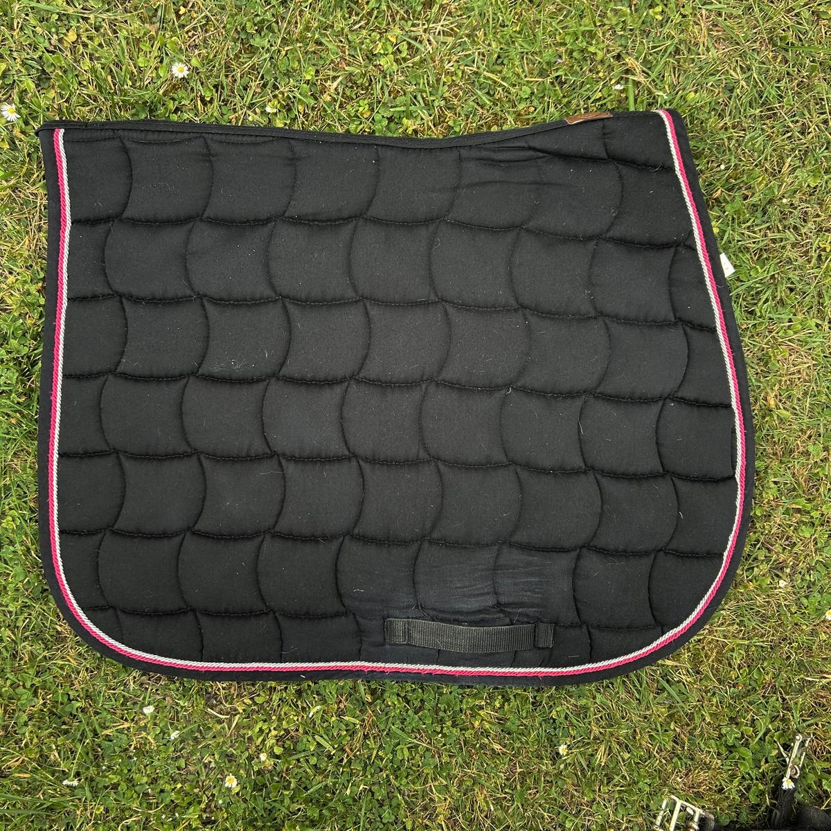 - Tapis de selle de la marque Harcour, taille FULL, coupe mixte ou CSO, de couleur noir, liseré rose et argent