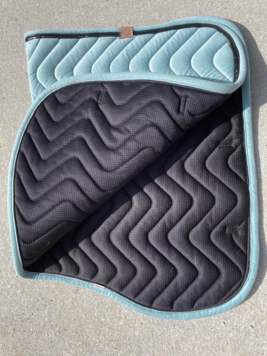 Tapis équiteme velvet bleu ciel intérieur nids d’abeilles porté seulement quelques fois en concours