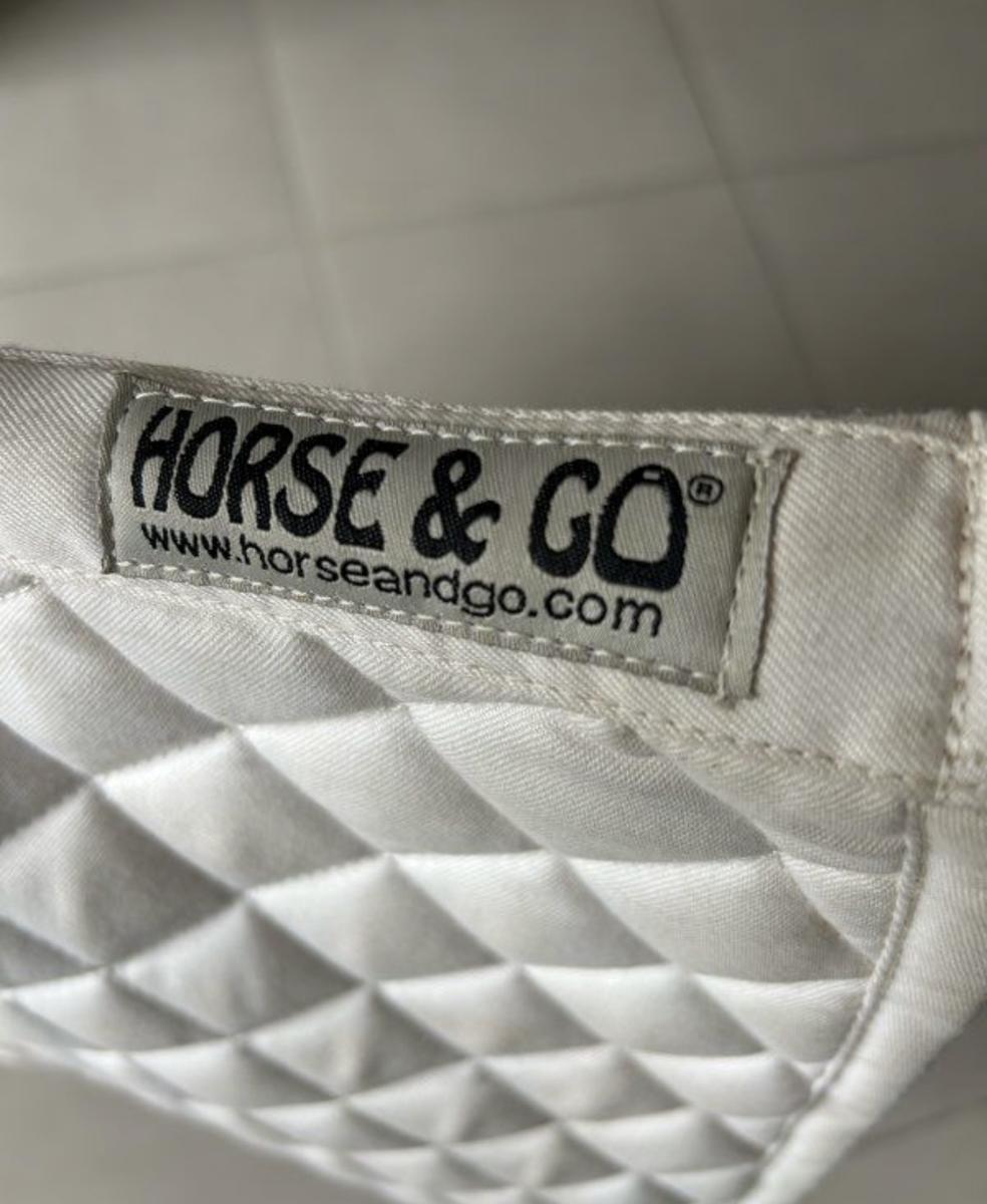 Je vends un tapis blanc de la marque horse and go, utilisé 1 seul fois, en très bon état. Sera lavé avant envoi.