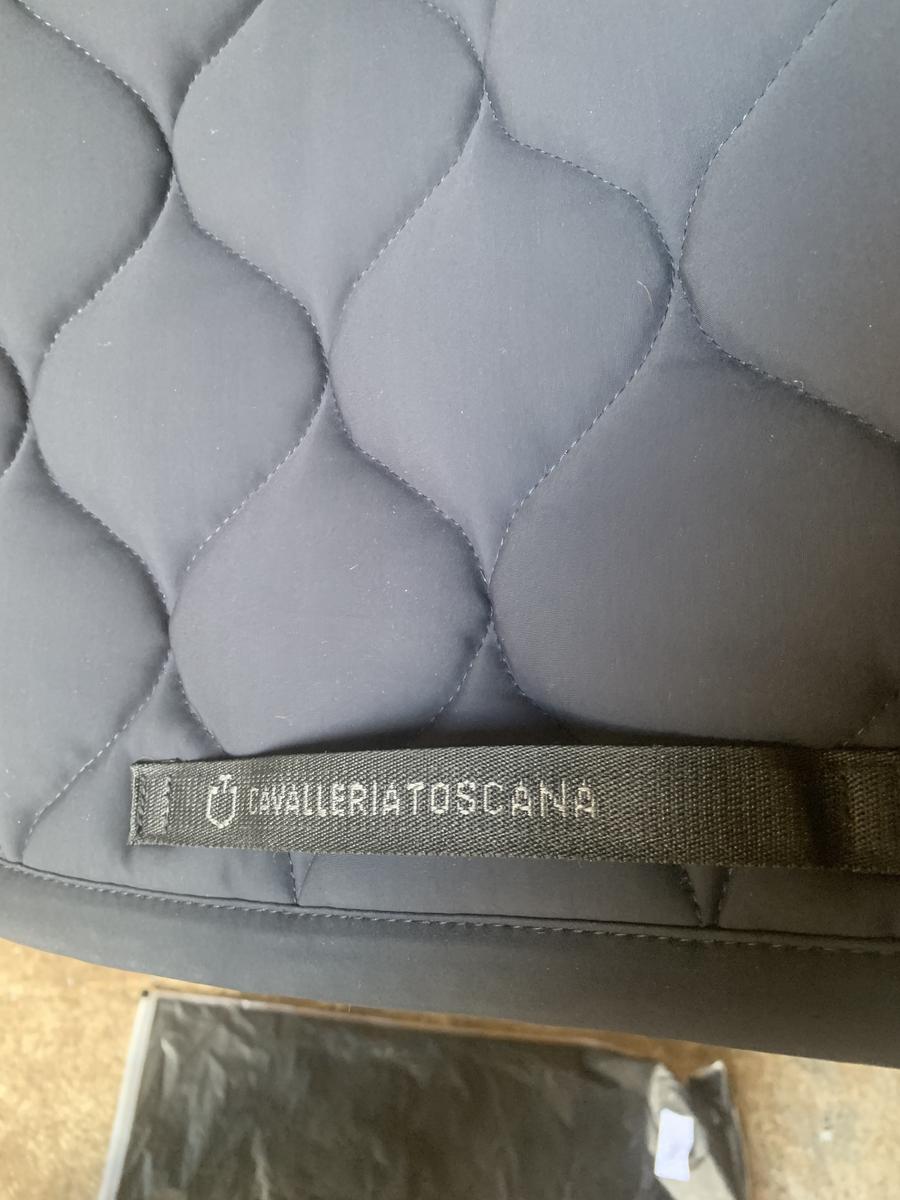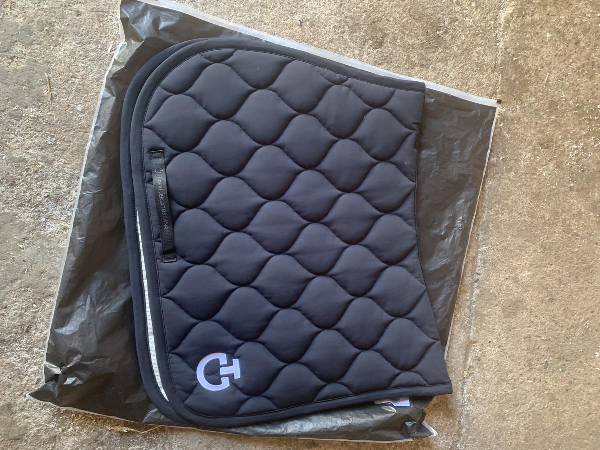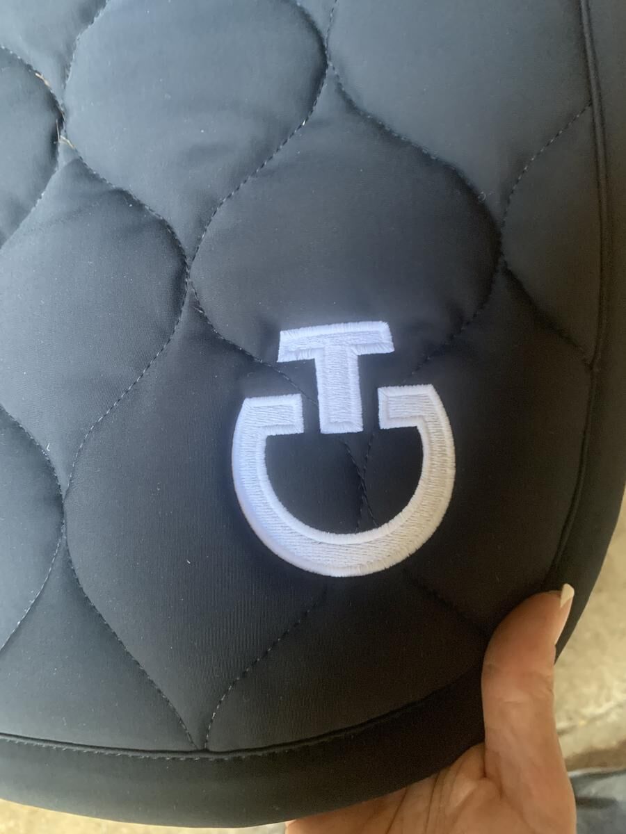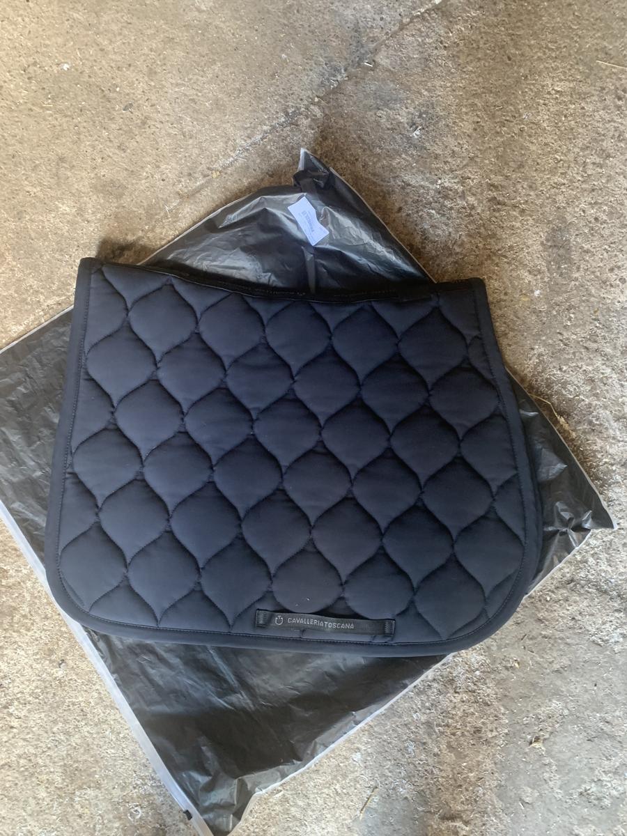 Tapis de selle Cavalleria Toscana noir avec le logo blanc.