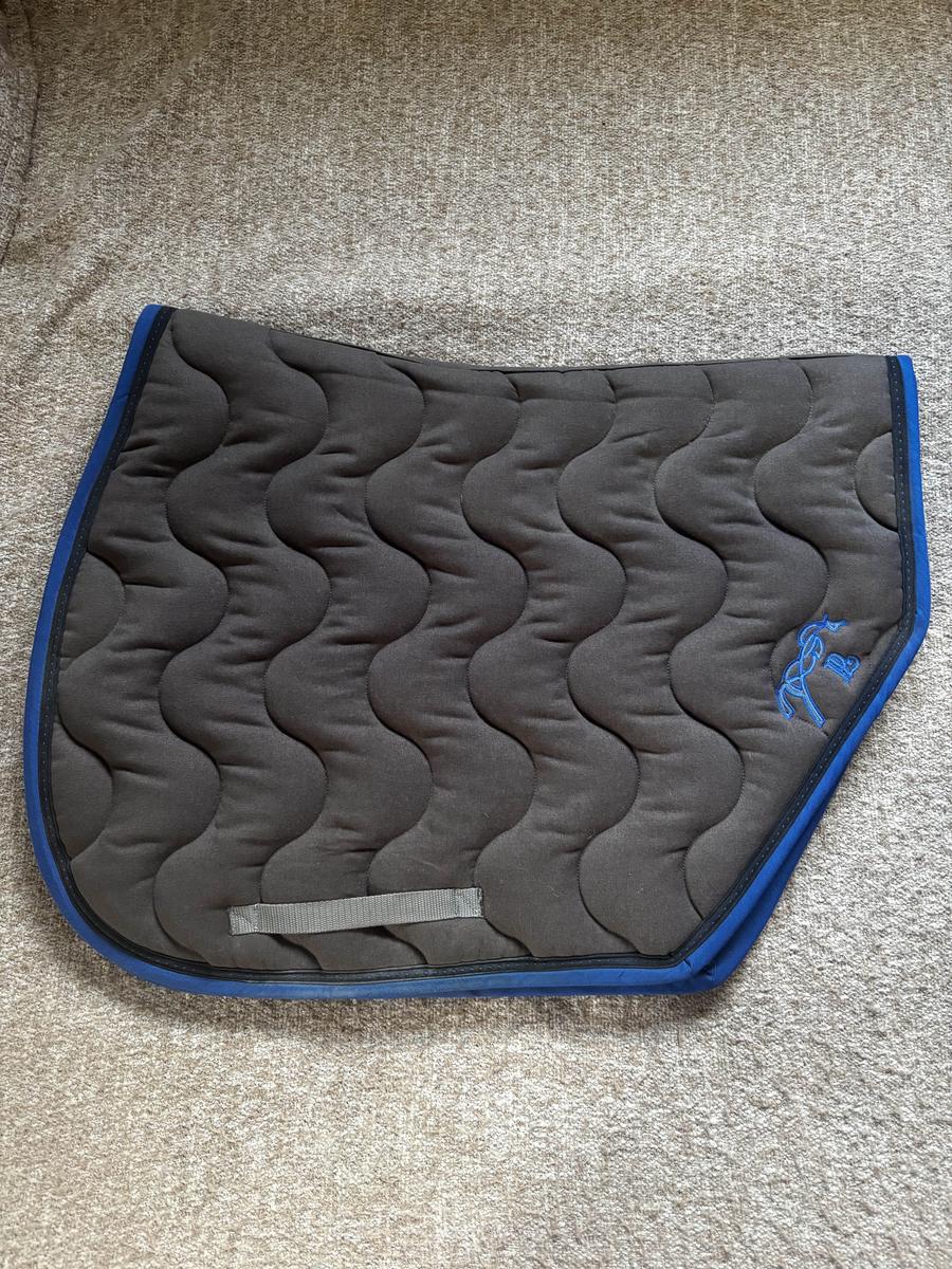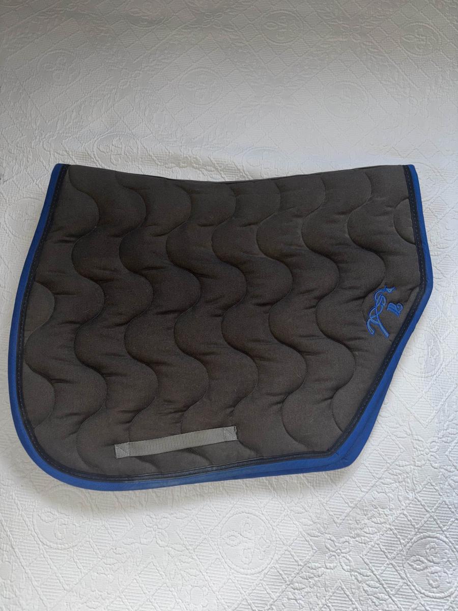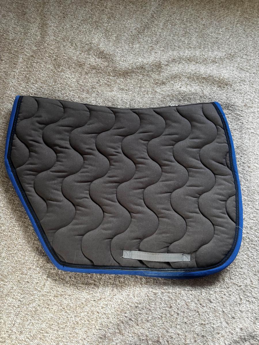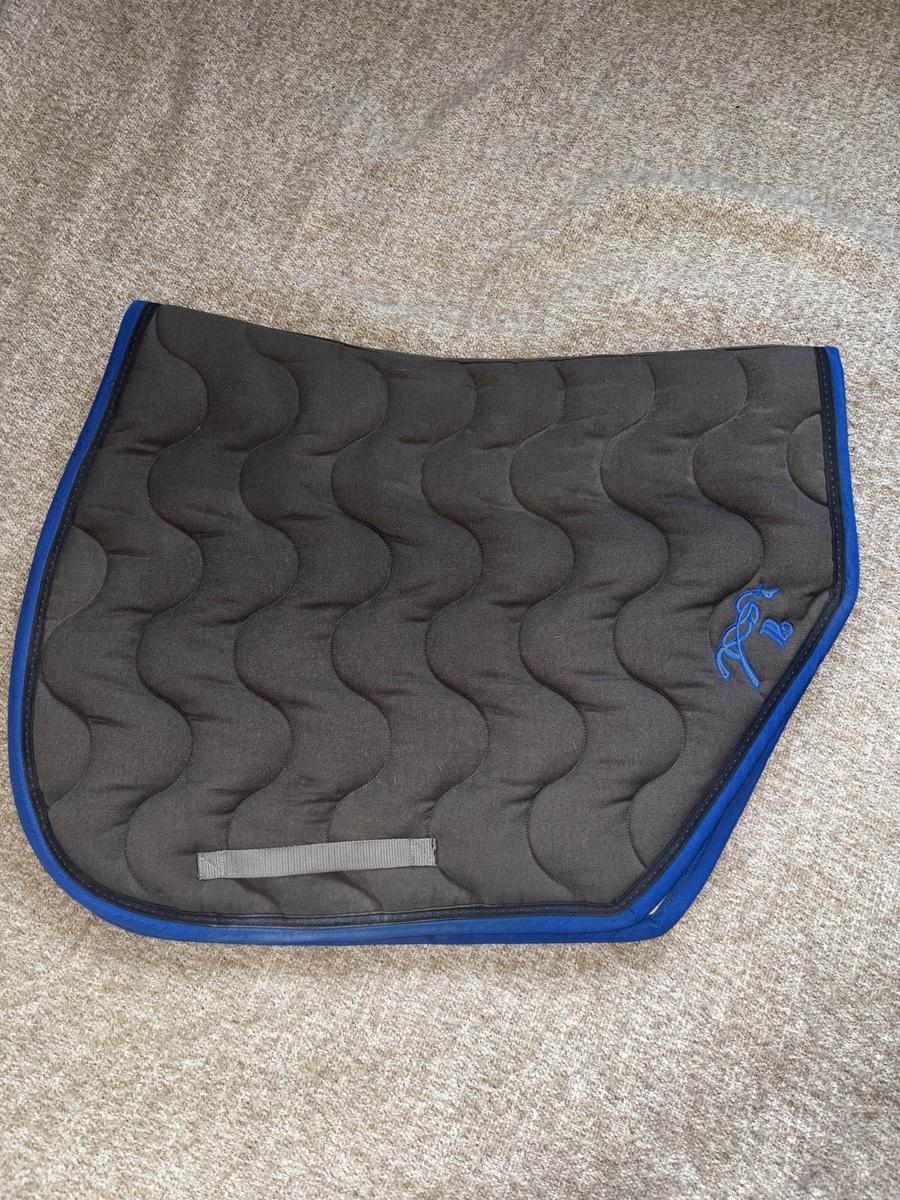 Tapis Pénélope gris avec liseré bleu. Très peu utilisé, très bon état