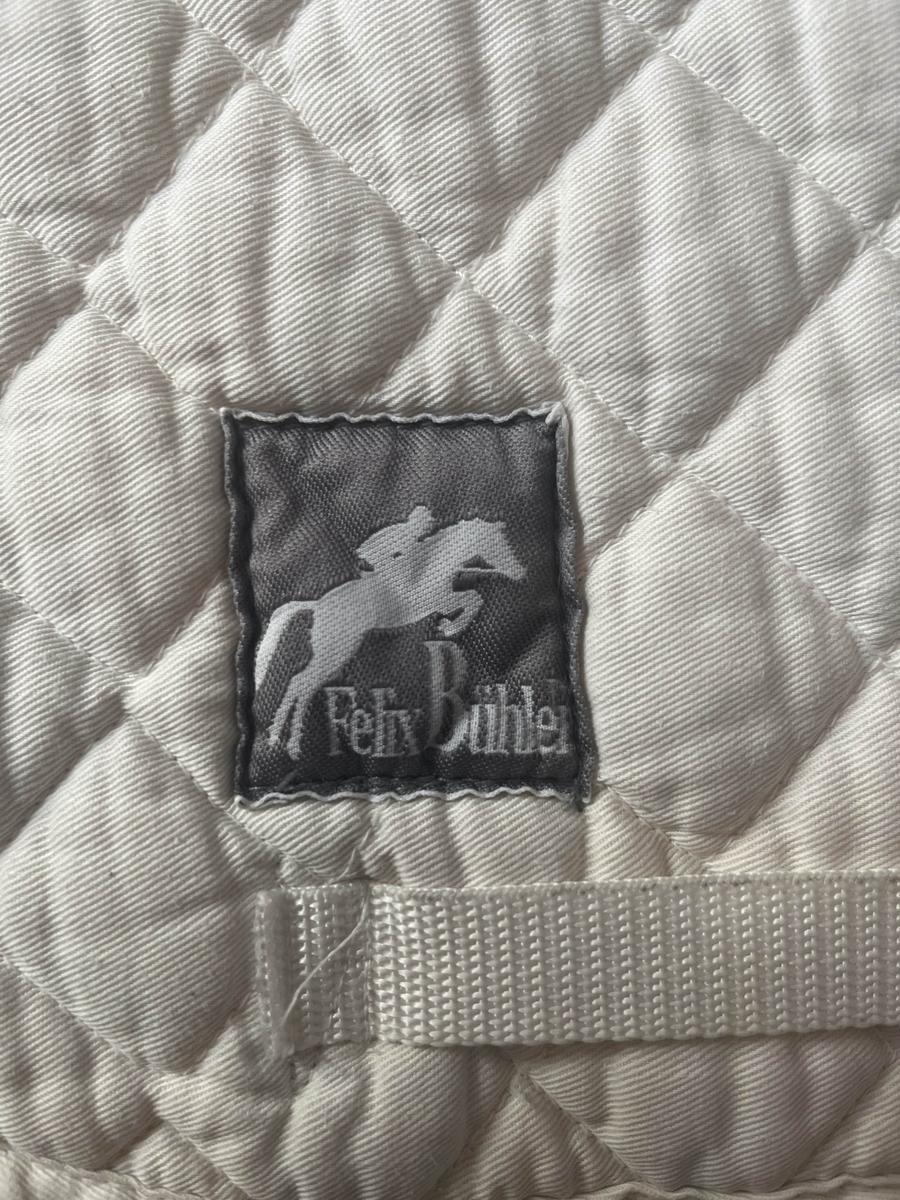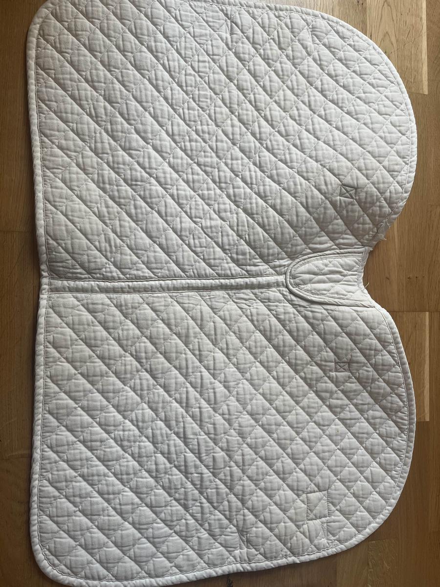tapis blanc taille poney avec deux tache de décoloration de la selle mais camoufler avec la selle dessus