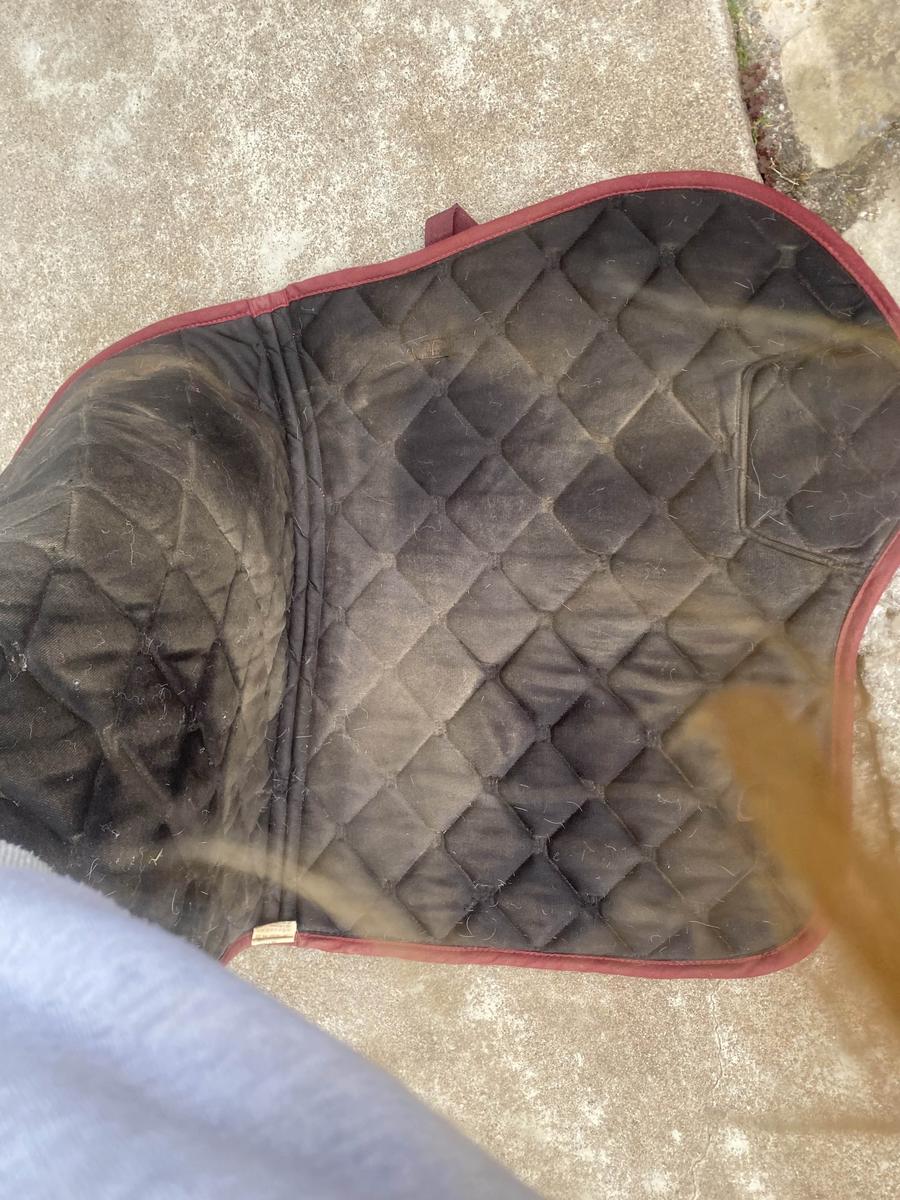 tapis covaliero bordeaux déjà porté quelques traces d’usure mais peu très bien servir