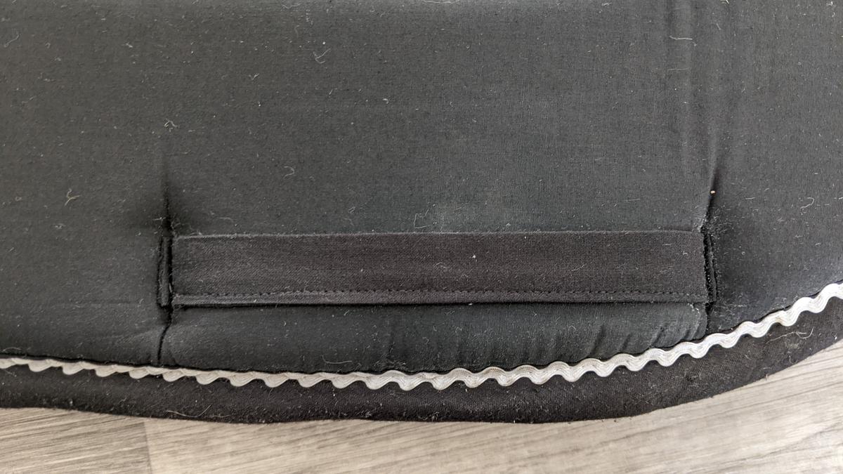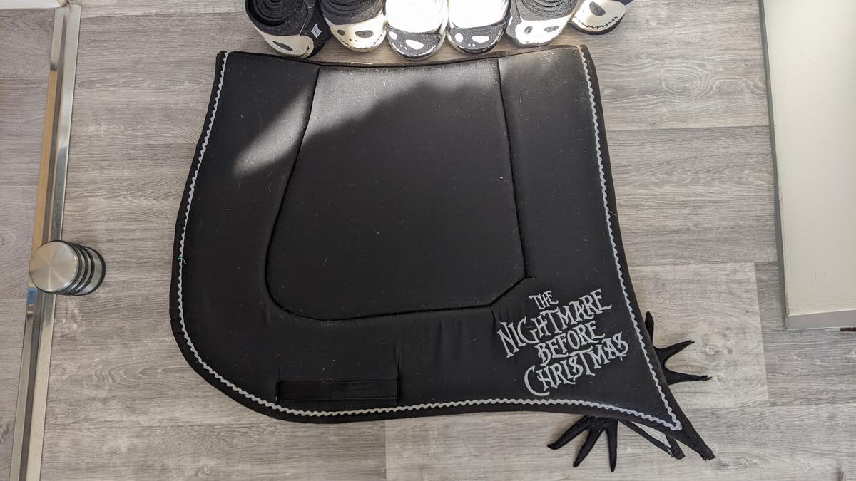 Tapis nid d'abeille, longueur dos 53cm, hauteur au niveau du passage de sangle 51cm. Noeud papillon à scratch