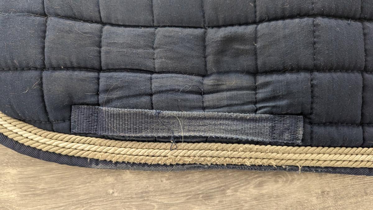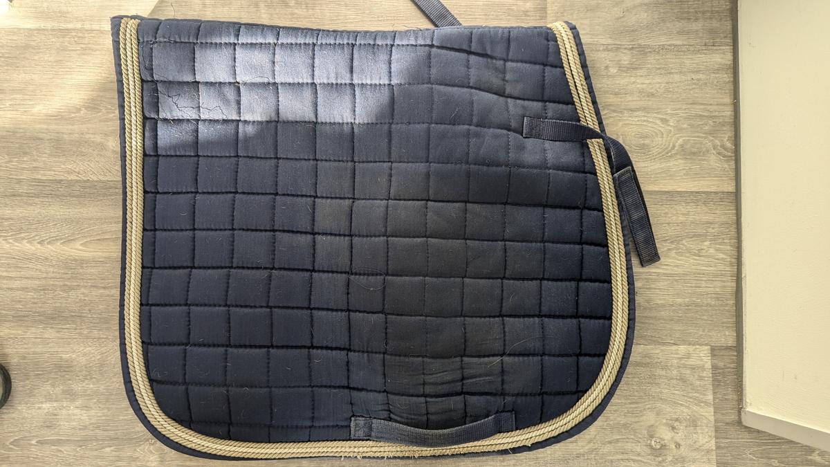 Tapis de dressage Horze, bleu marine avec 3 cordelettes (beige, blanche, beige)