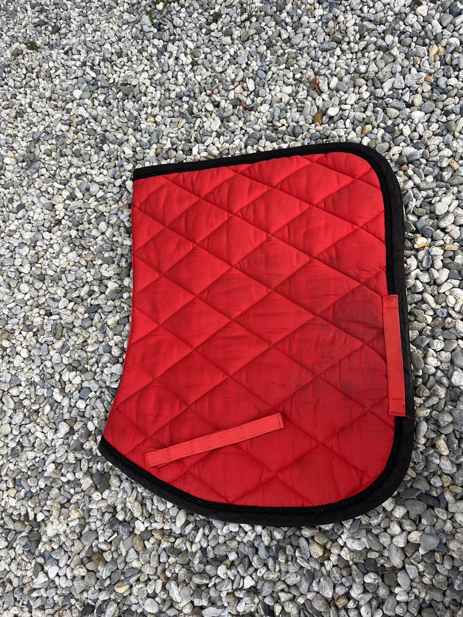 Tapis taille cheval porté plusieurs fois. Il présente des petites taches causées par une selle mais qui ne se voient plus du tout une fois porté.