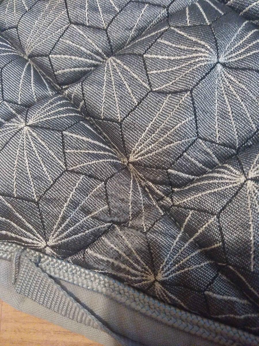 Gris clair, detail argenté brillant. Porté souvent, une trace d'usure au passage de sangle (photo), sinon en parfait état. Marque Breizh etho, fabriquer en France, unique