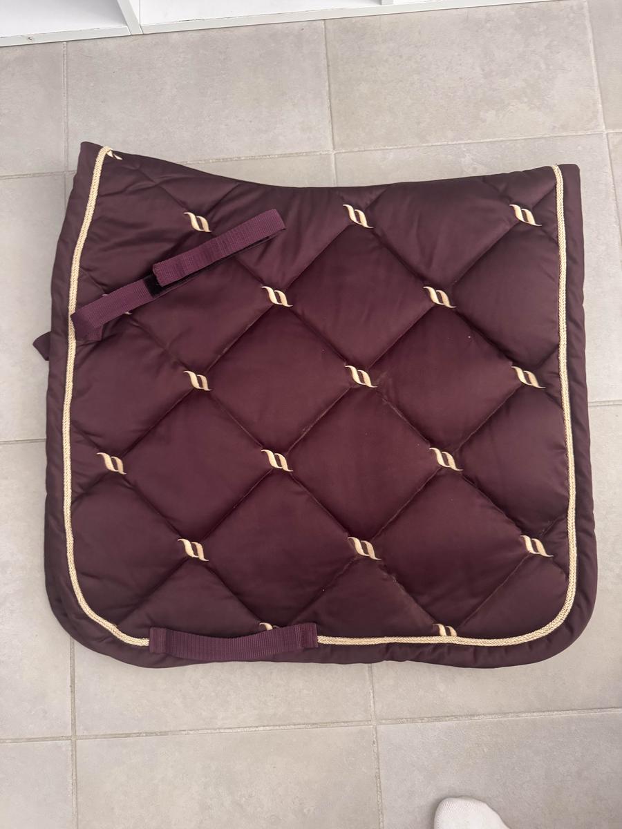 tapis back on track couleur bordeaux coupe dressage taille cheval très bon état malgré des petites taches de sueur que je n’arrive pas à faire partir juste à la machine (il faut du détachant)