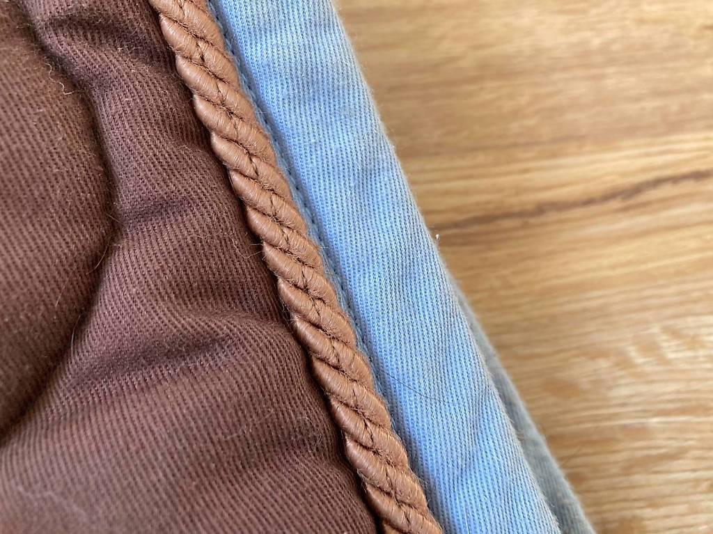 Marron avec bordure bleu clair et cordon camel