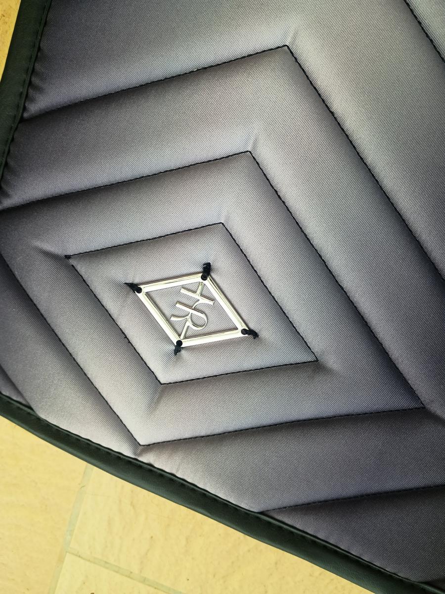 Tapis de selle de la marque Mrs Ros, couleur gris bleu ombré, taille dressage full, intérieur en nid d'abeille, neuf sans étiquette.