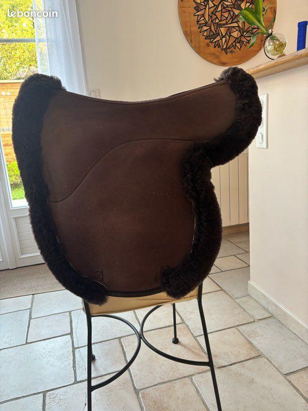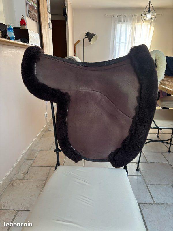 Tapis de selle en forme de selle avec faux mouton marron/marron né de la collaboration entre Lemieux et Acavallo . Face grip pouvant être mise en contact avec le dos ou la selle. Très bon état , porté deux fois . Convient pour selle mixte ou selle avec peu d’avancée de quartier. Utilisé avec Wintec 500 et lite sans problème . Sera nettoyé pour la vente .