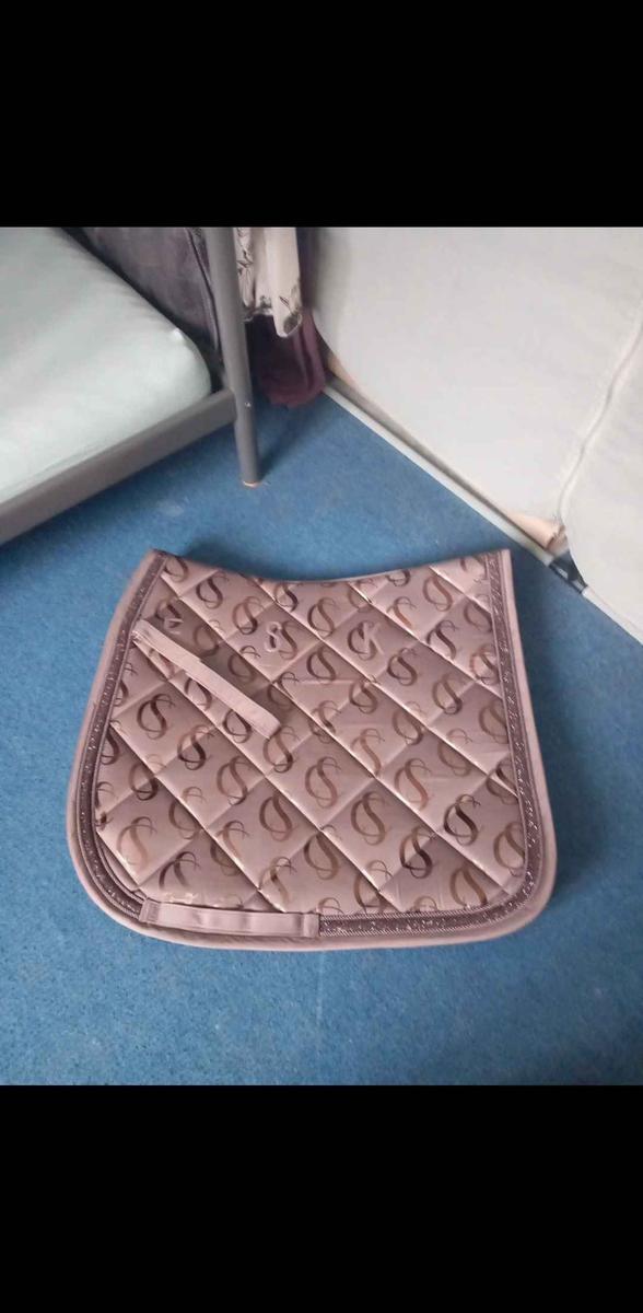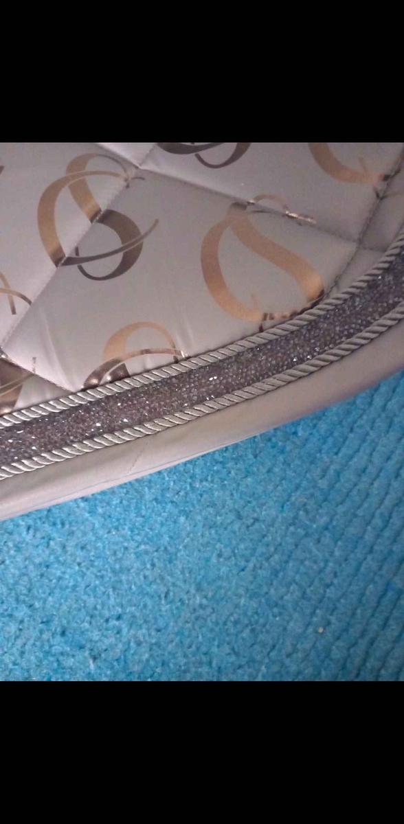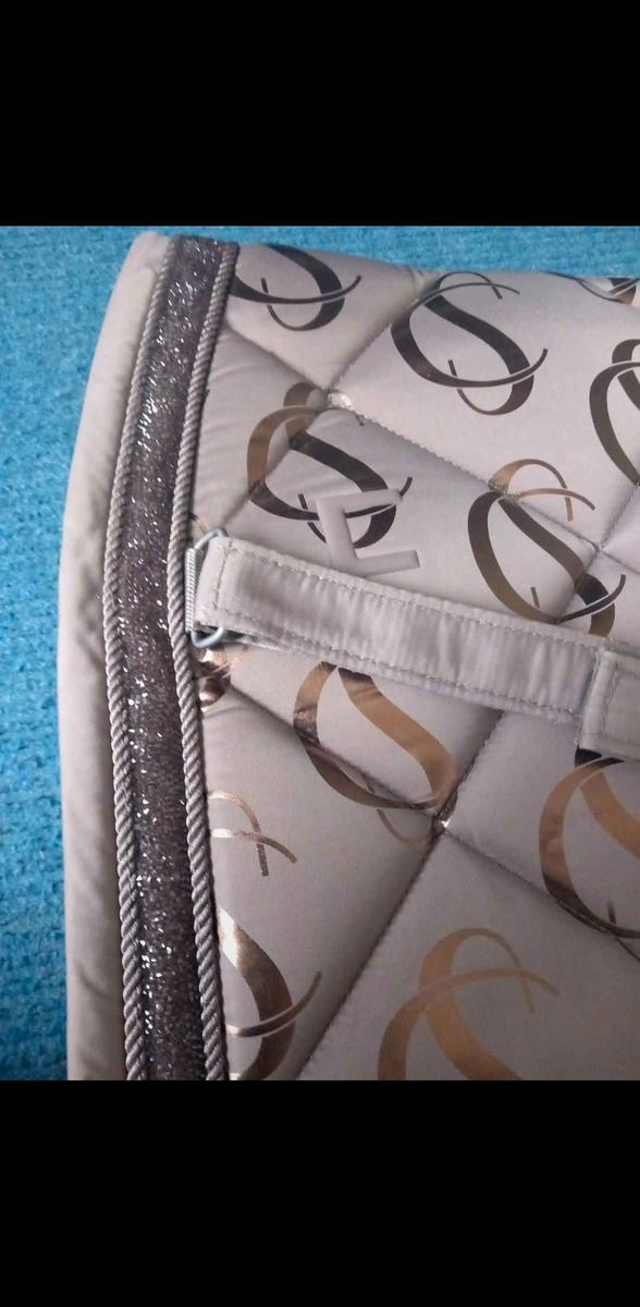 tapis Eskadron avec liseré Strass, couleur identique à la photo, dressage taille full. (beige/rosé )