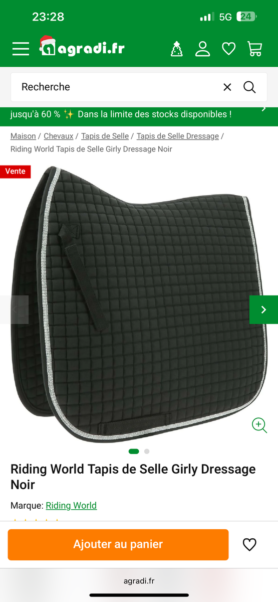 Tapis de dressage noir avec liserai argenté, neuf avec étiquette
