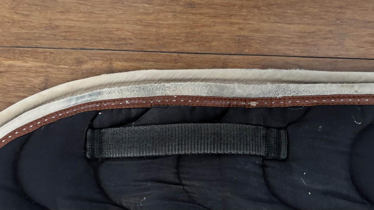 En bon état mais légèrement abîmé au passage de sangle de chaque côté (ne se voit pas à cheval)