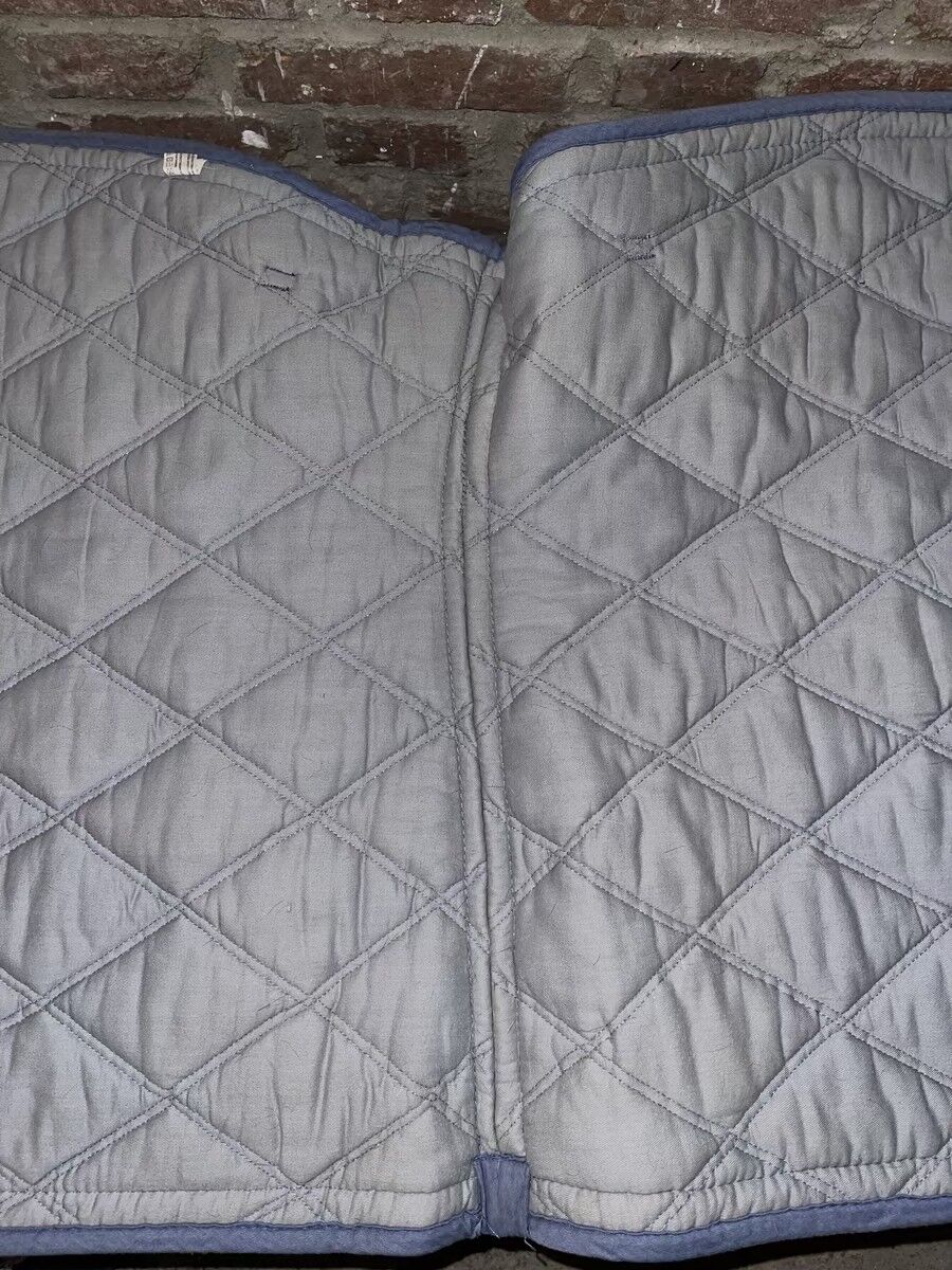 Le tapis est tout propre, il a été aspiré puis lavé et conservé dans une malle au sec. Il y a des strass bleu le long du bord.