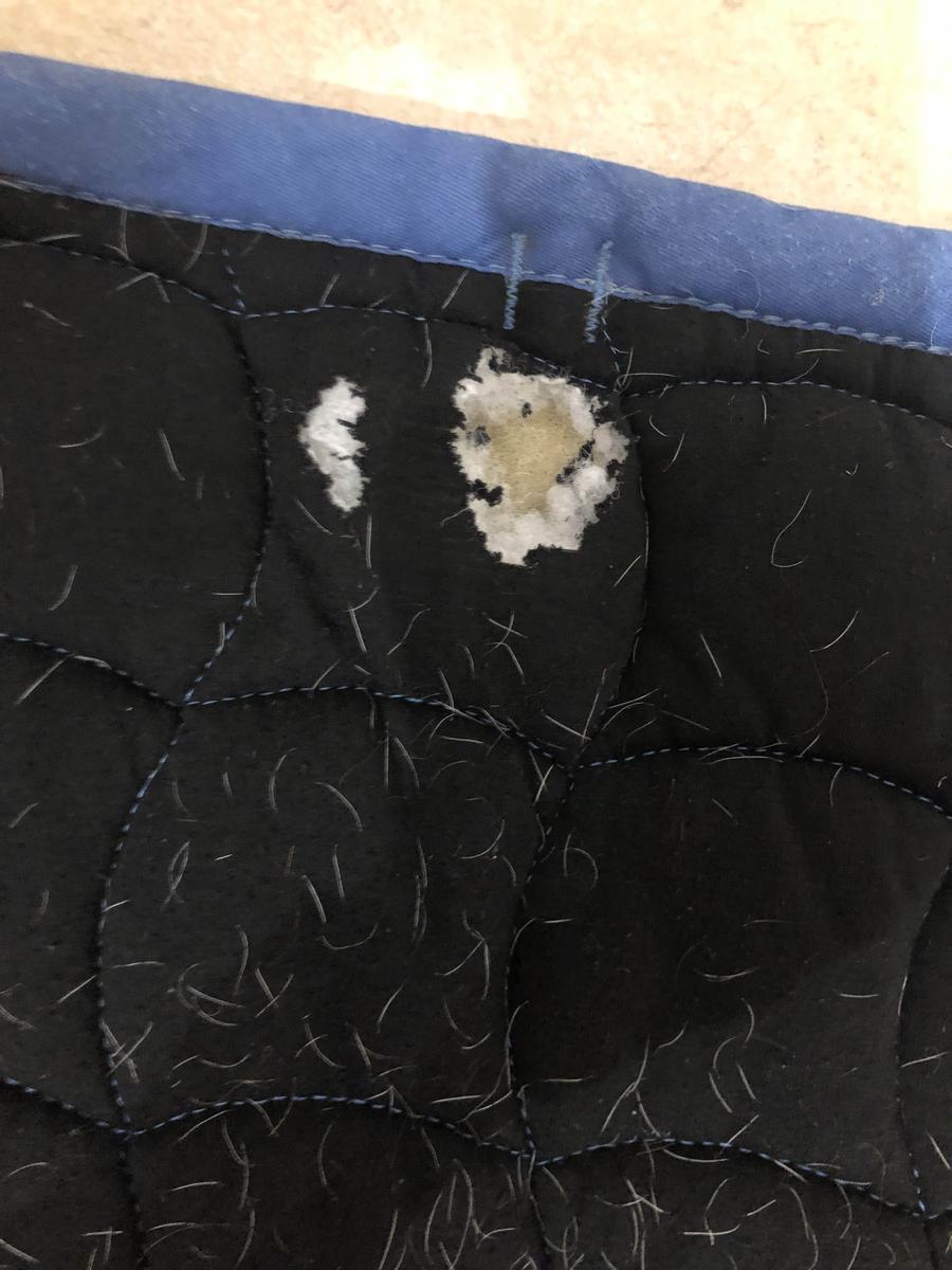 taille correctement avec tache au niveau du passage de sangle et un trou au dos du tapis