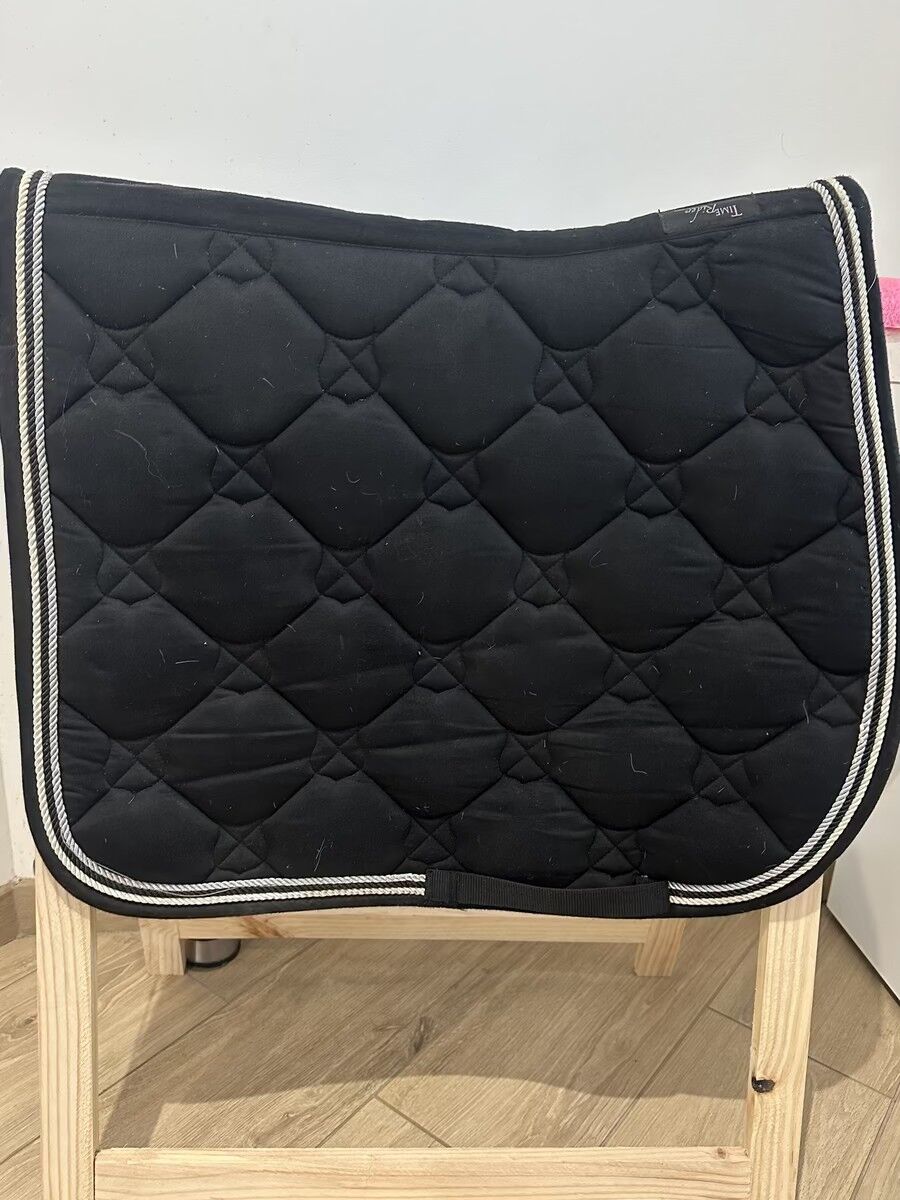 Tapis de selle coupe cso/mixte noir avec bordures blanches et argents