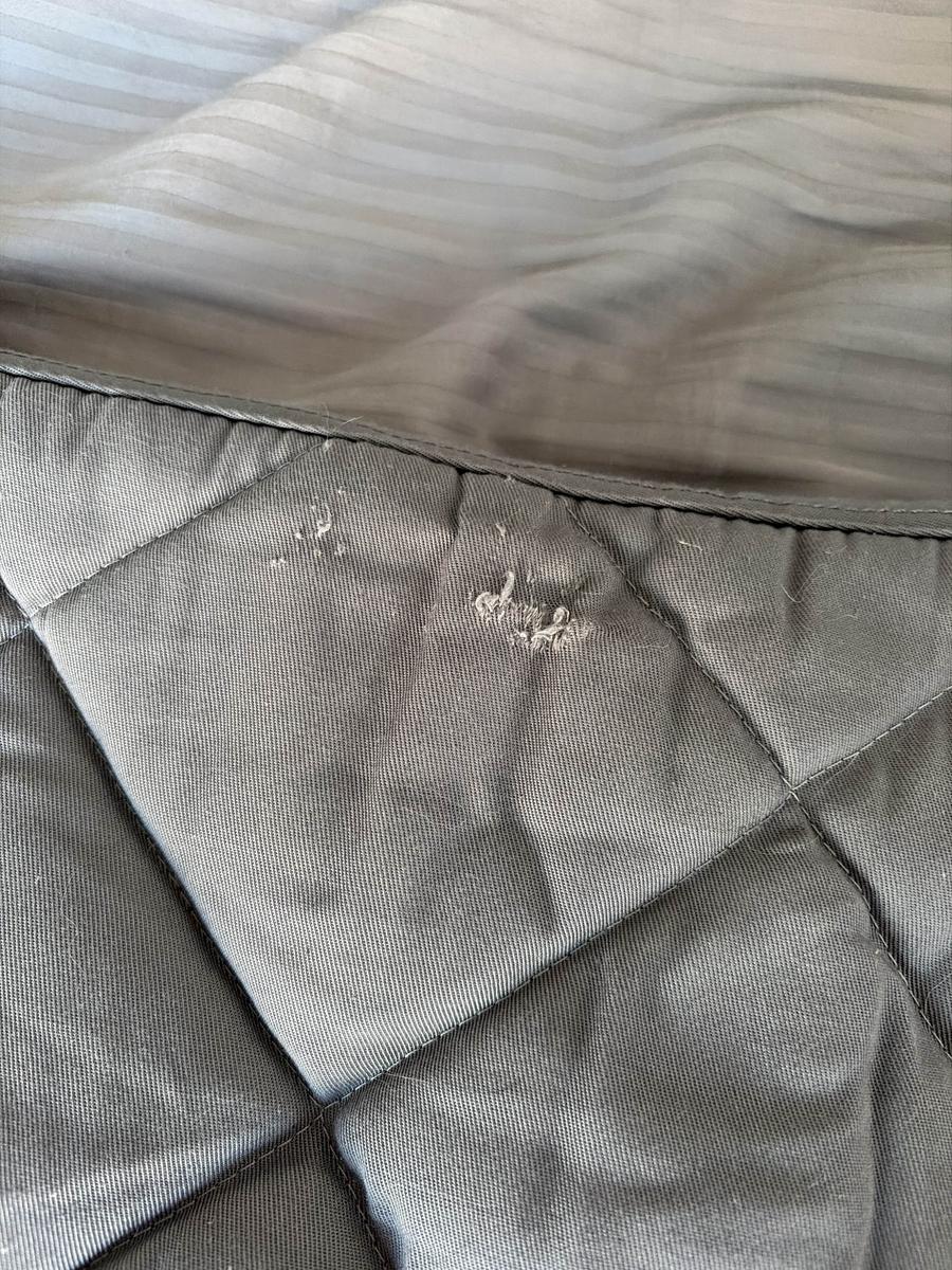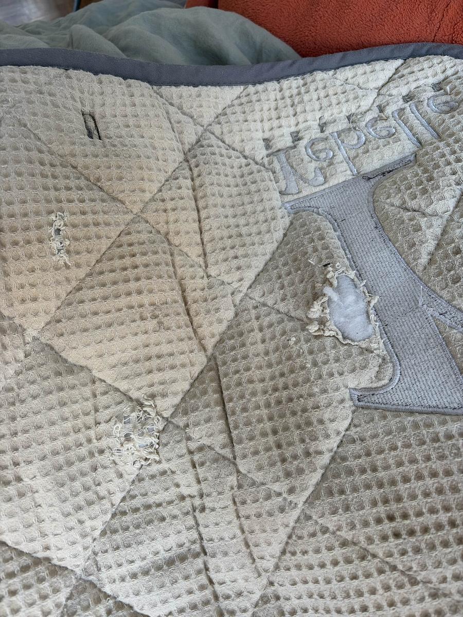 Encore en assez bon état. Quelques traces d’usure montrées en photo. Coton nid d’abeille. Taille FULL/cheval
