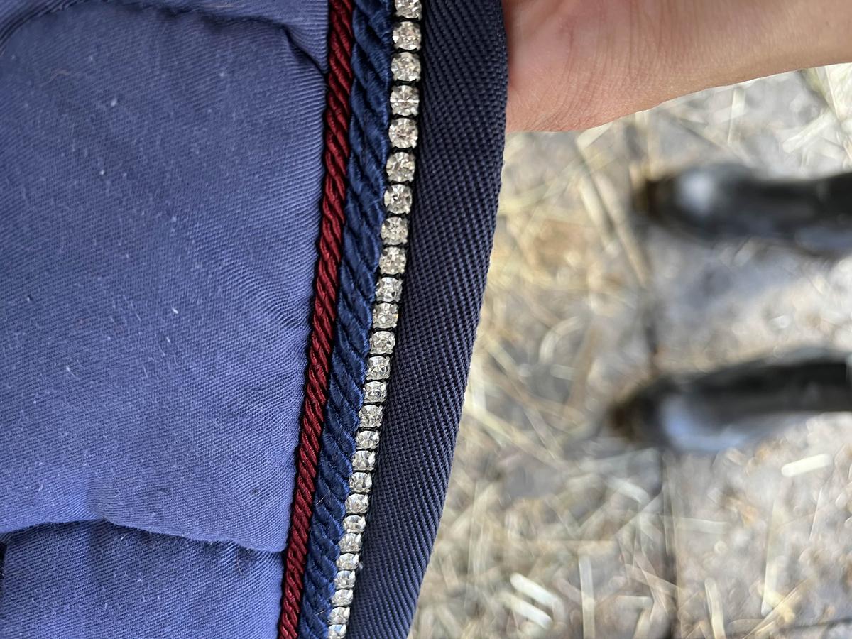 Tapis Anna Scarpati Taille cheval Bleu, strass et Bordeaux Très peu porté Personnalisé donc unique Scarpati, Animo, Cavalleria, Harcour, Samshield
