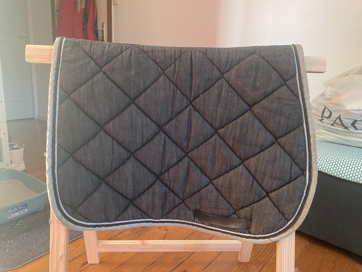 Tapis de selle privilège équitation gris chiné et bleu ciel