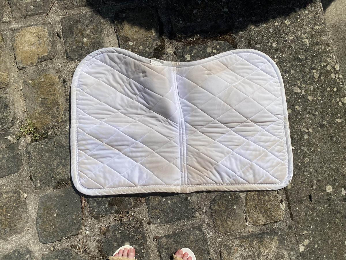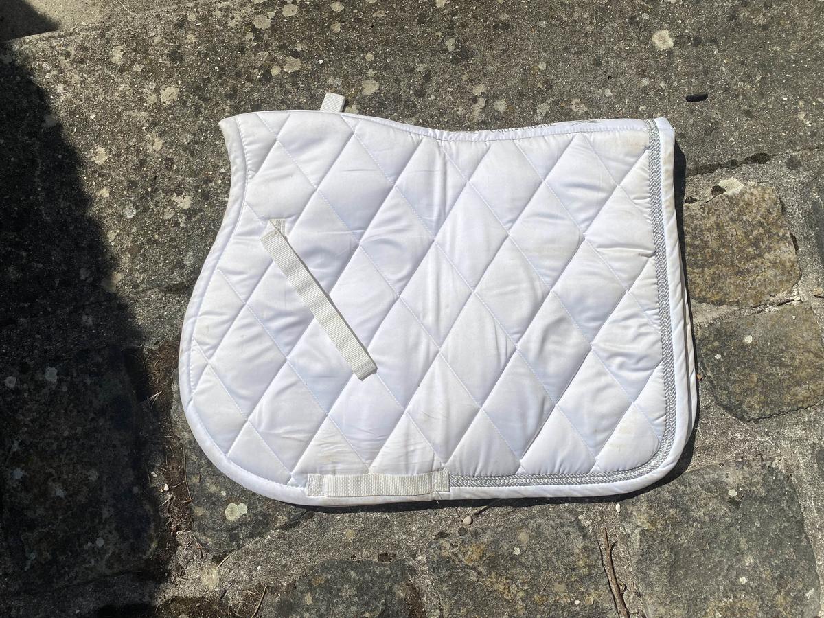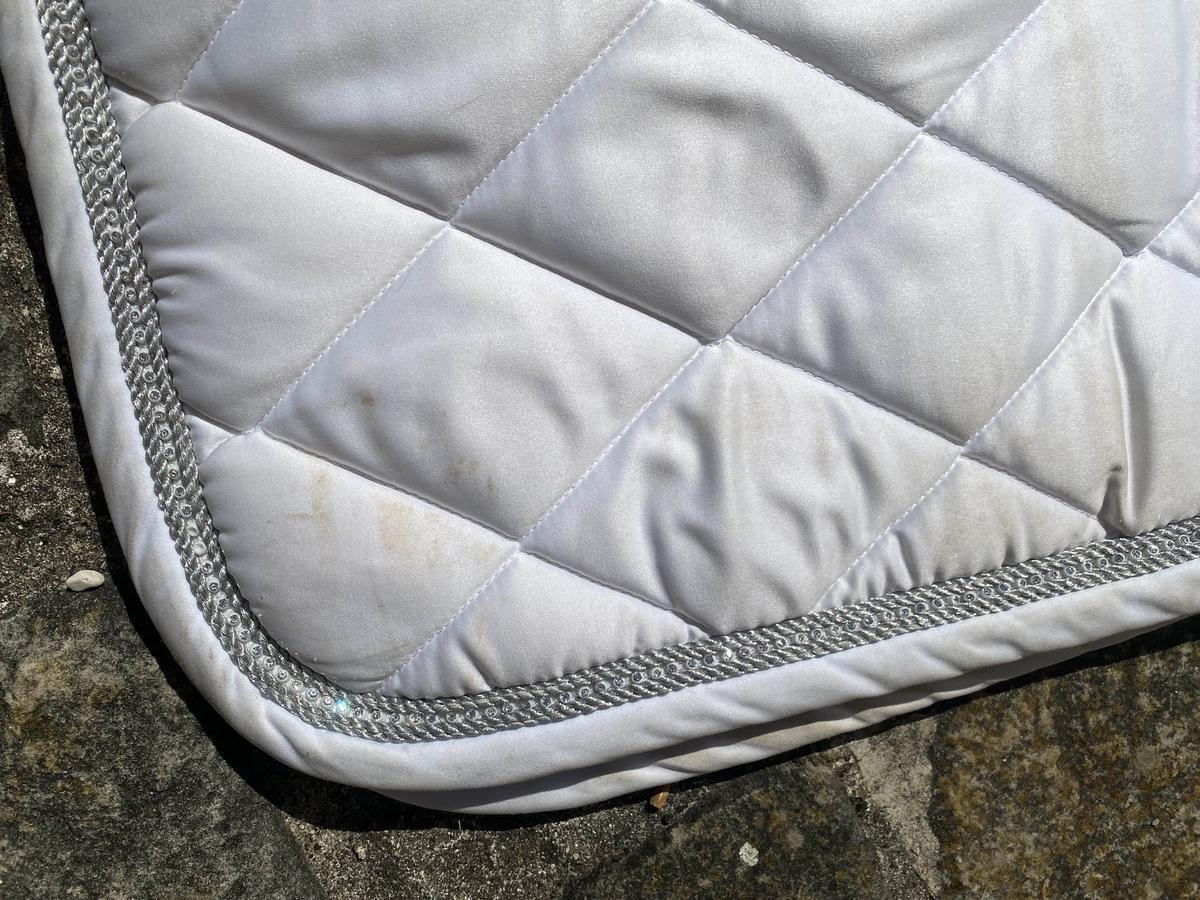 Tapis blanc sans marque, jolie bordure avec strass argenté.
