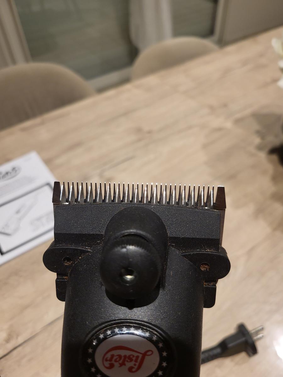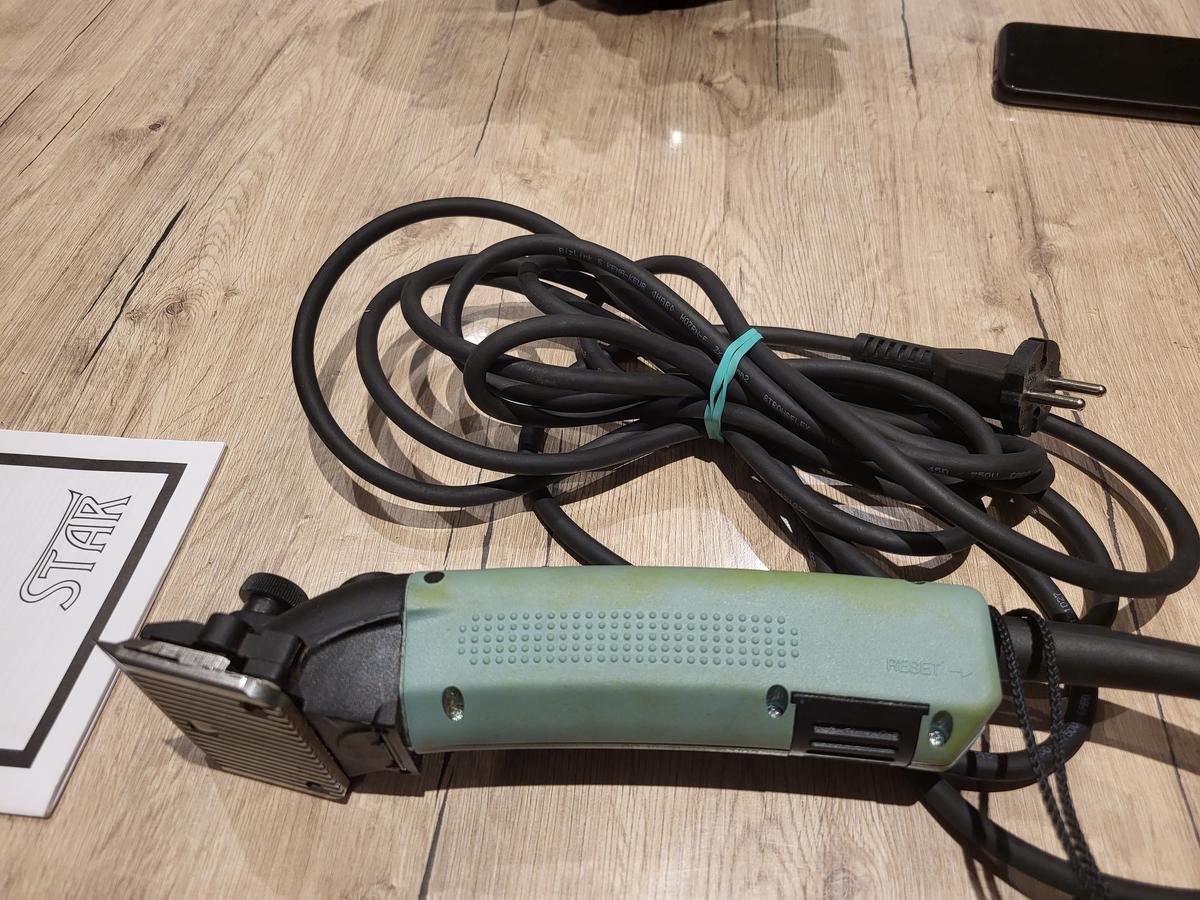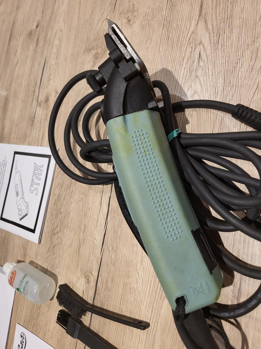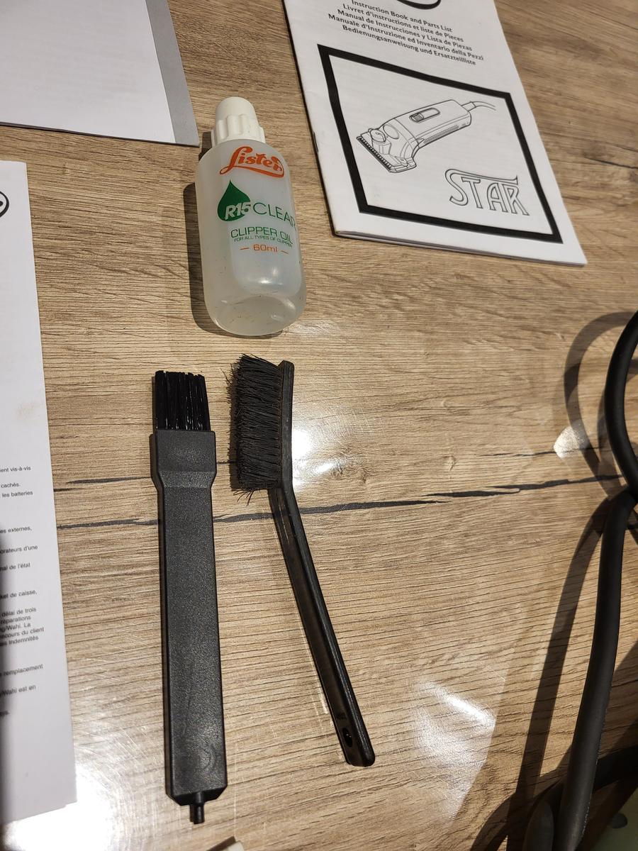 Vendue avec les peignes qui viennent d'être affûtés (Valeur affûtage : 25 €) et un kit de pièces de maintenance (21 € ; utilisé pour un bouton de serrage égaré), petit flacon d'huile Lister, 2 petites brosses.