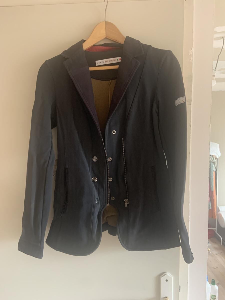 Veste bleu, détails rose. Taille 36. Très bon état.