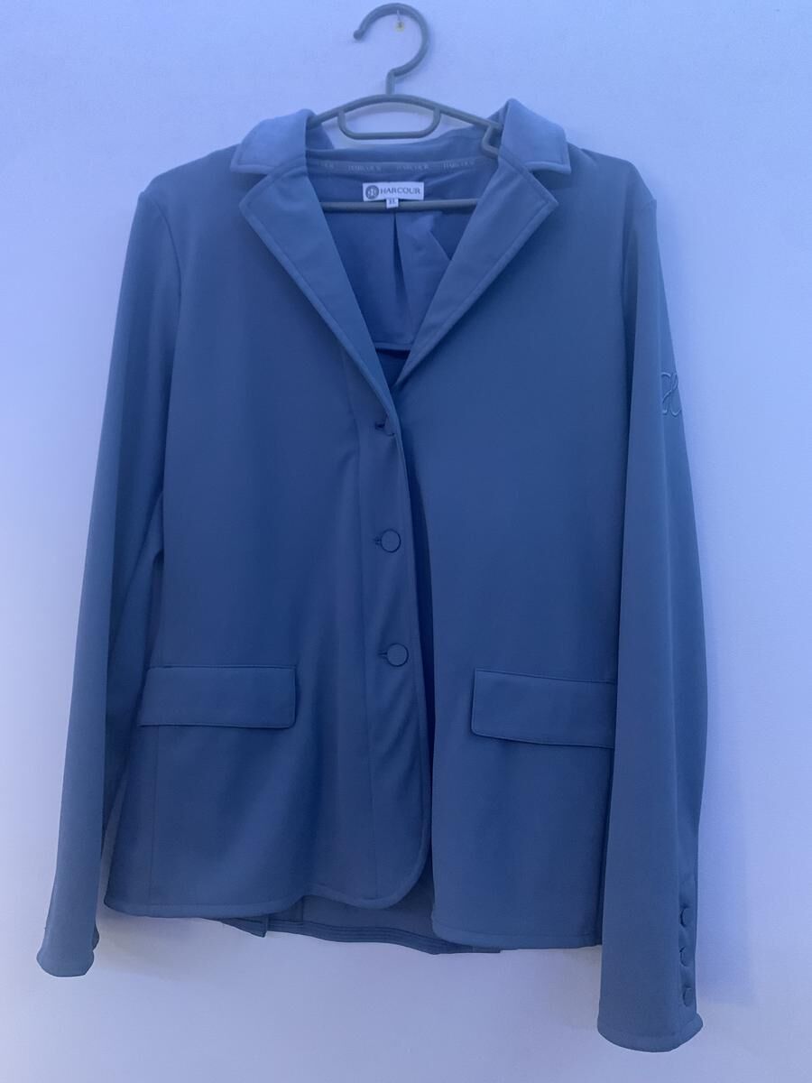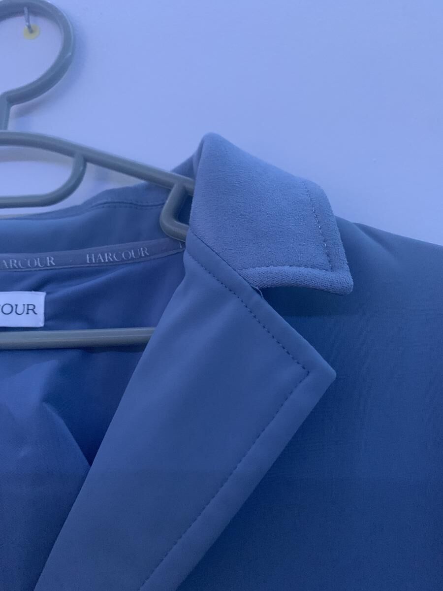 Veste Harcour bleu ciel porté une saison en très bonne état, taille XL mais plutot taille L, se ferment avec une fermeture et des boutons