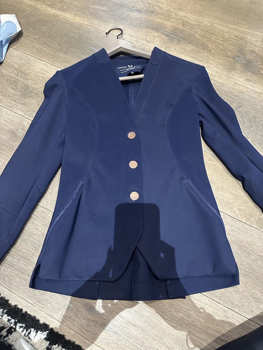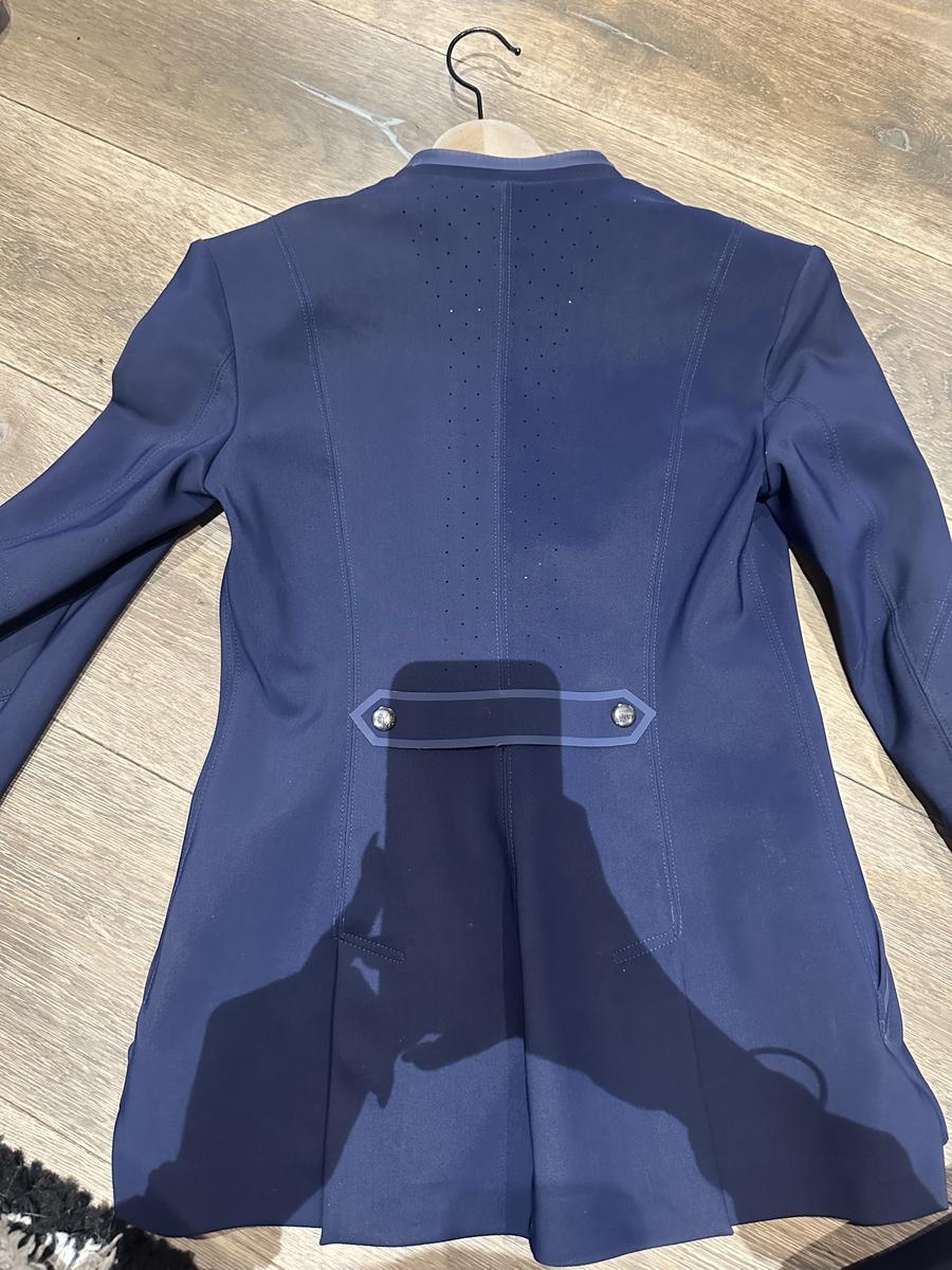 Veste de concours bleu marine, en excellent état, elle est compatible avec l’airbag (boutons aimants), très respirante et confortable