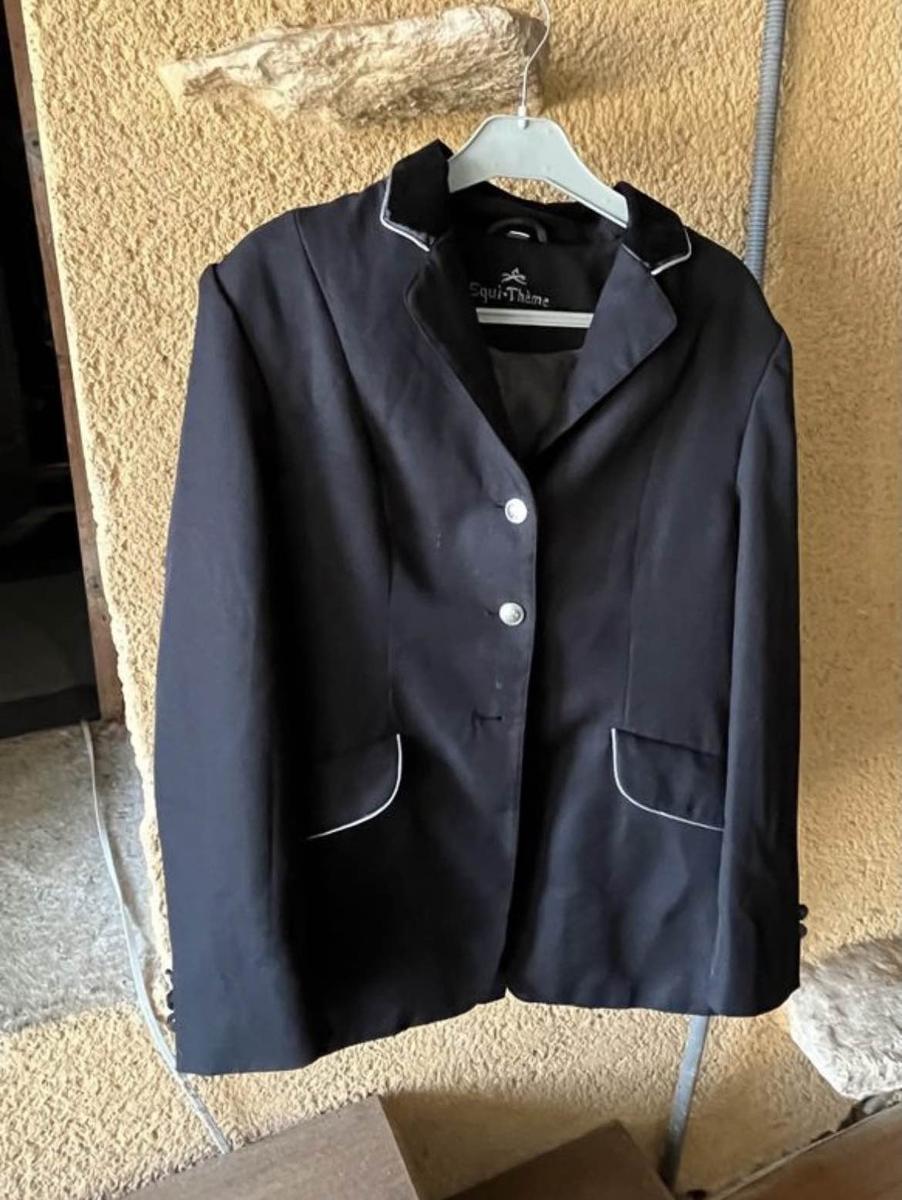 Veste de concours equi thème, noir, taille 40. Il manque un bouton en bas pourra être ajouter si nécessaire, mais ne sera pas de la marque equi thème