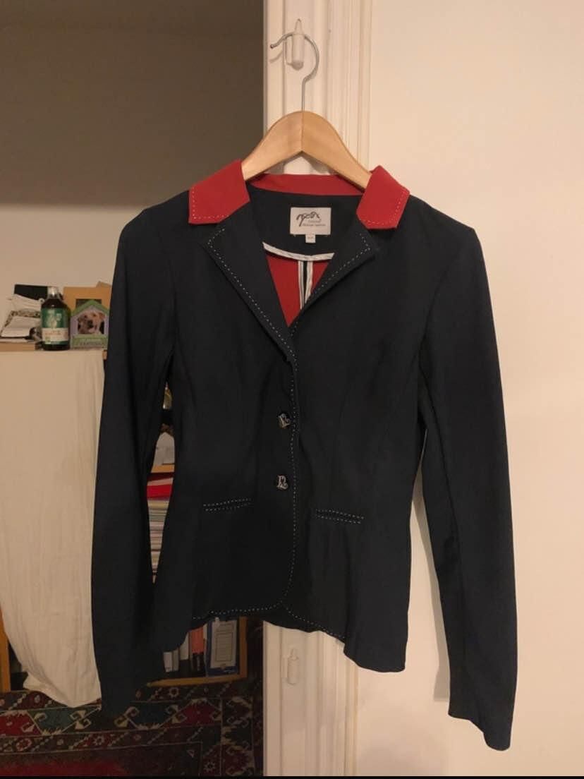 veste de concours bleu marine et rouge 0 défaut tres élégante portée à cheval ou à pied taille 16, correspond à du 34 ‼️la marque taille petit, correspond max 1m65‼️
