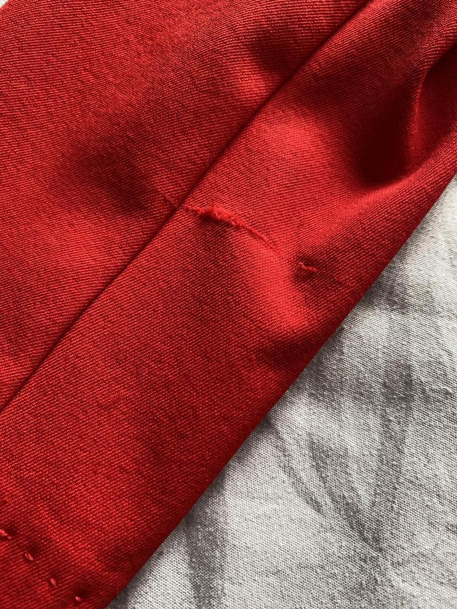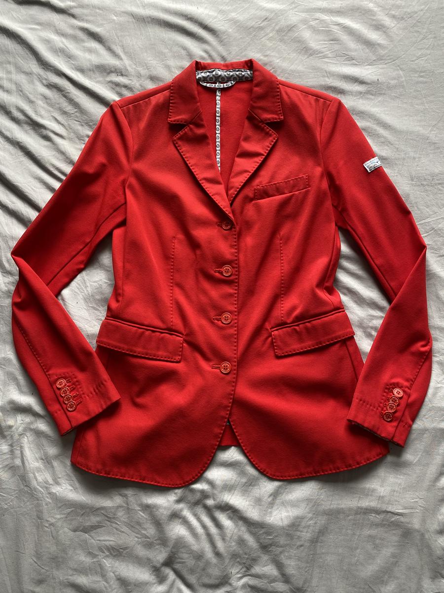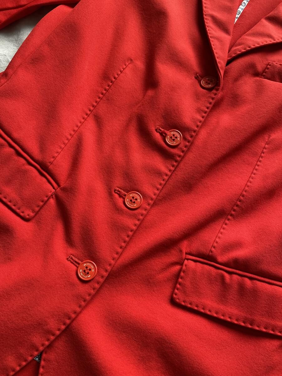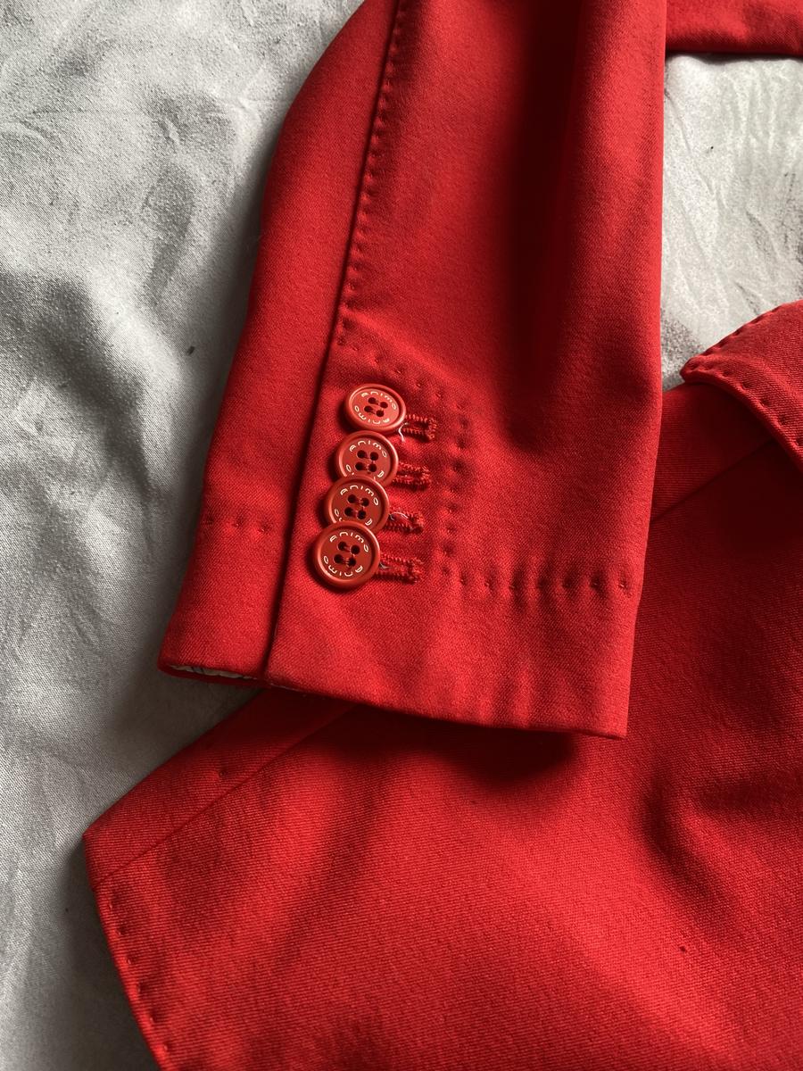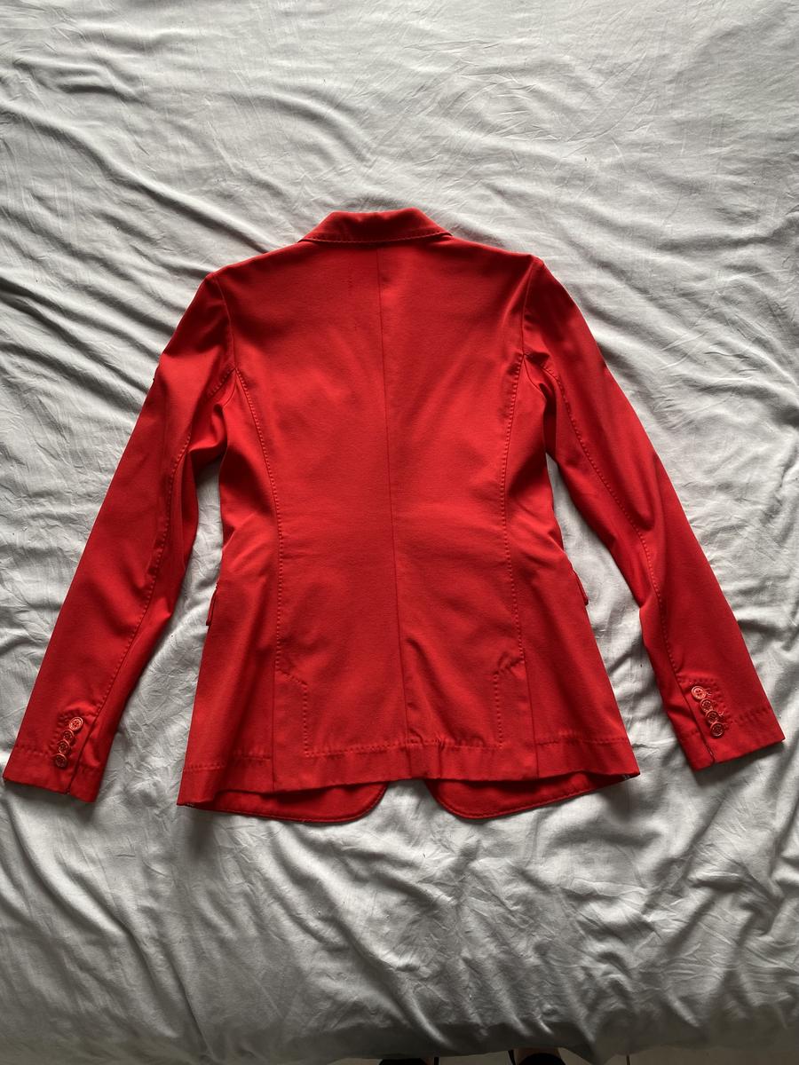 Veste animo rouge, détails bleu et blanc sur le revers des manches. Taille 42 italienne, 36 allemande soit 38 français (taille un peu petit). Présente quelques défauts au niveau des manches. Taches sous le logo animo sur la manche gauche, tache et accrochage au niveau du poignet de la manche droite