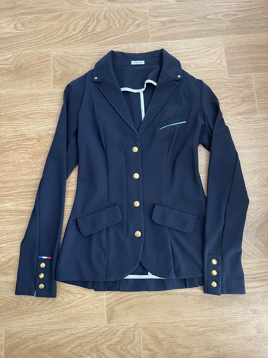 Veste de concours Le Sabotier bleu marine taille 34 avec fermeture à pression et fermeture éclair porté 1 saison mais en très bon état malgré quelques bouloches ( voir photos )