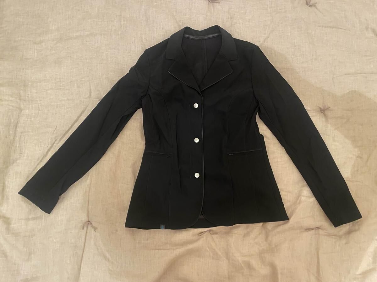 Veste de concours Helite noire, compatible air bag jamais portée. Taille M. Coupe cintrée très légère avec des aérations sous les bras. Tissu élastique. Taille normale avec un airbag en dessous.