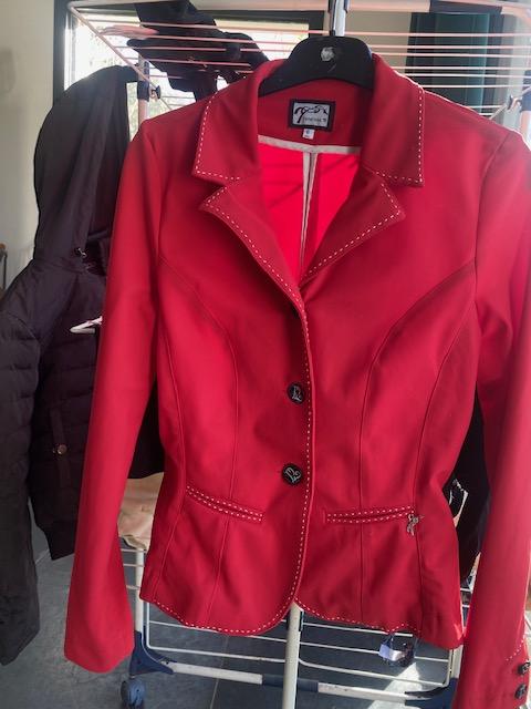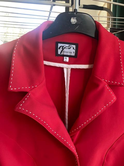 jolie veste Point sellier rouge de chez Pénélope Leprévost.