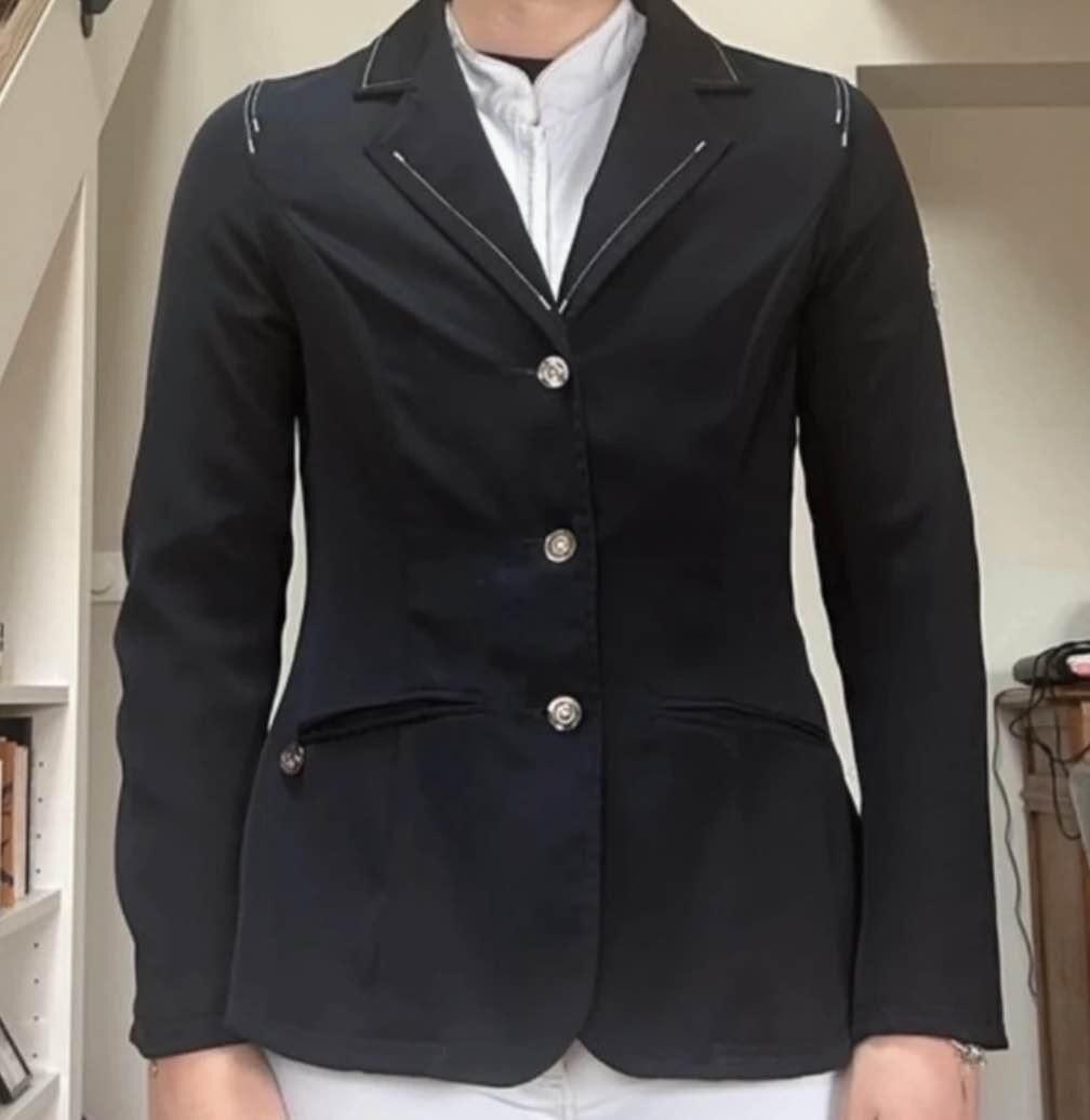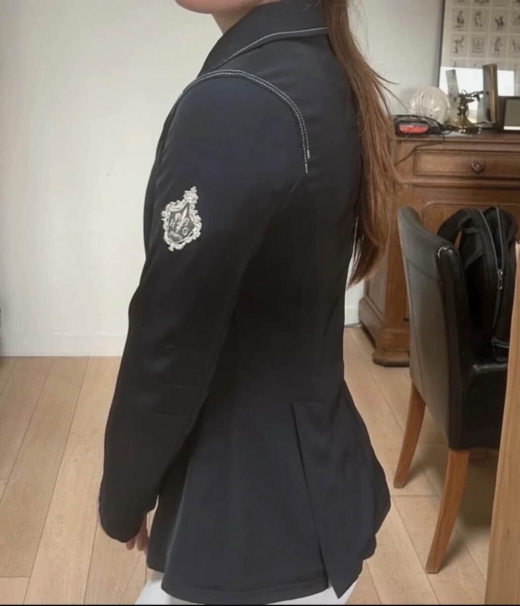 Je vends ma veste de concours jumpin, taille M, bleu marine, en très bon état, toujours bien entretenue !